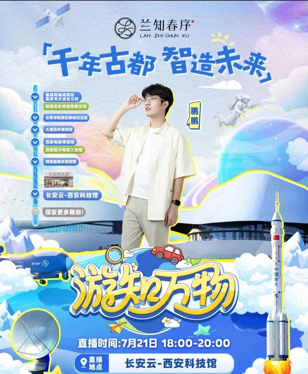 宇辉家新主播的真容来了,与辉同行官网发了真真的视频,还真是多才多艺,会跳舞,会弹吉他,还会京韵大鼓,据说是宇辉的学生,不过这个瓜不保真啊。 真真的首播时间是晚上9点,下午6点鹏鹏带我们云游西安科技馆,宇辉安排的很好,理科生走播科技馆更有兴趣。