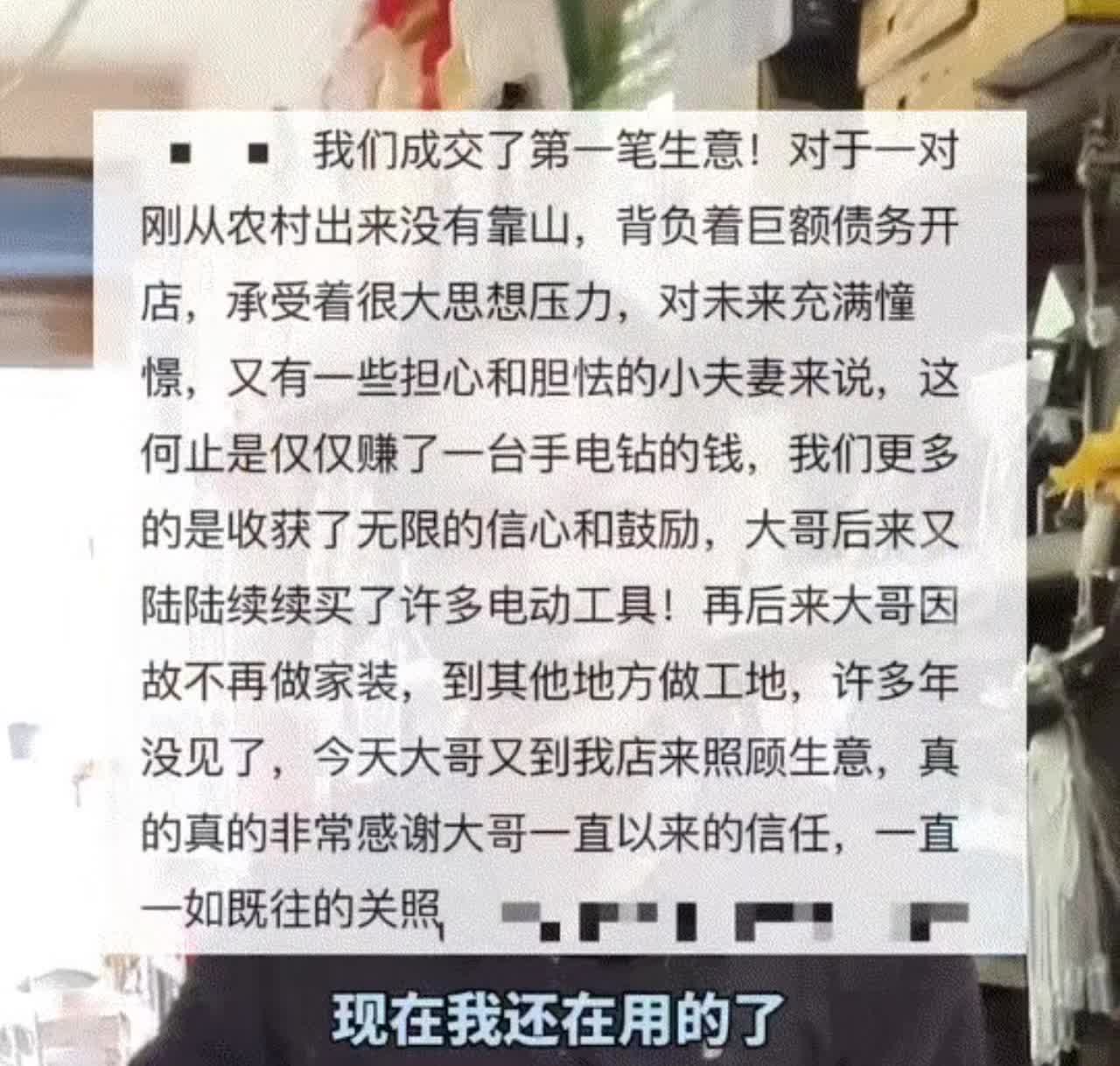 江苏,男子去五金店买东西,结账时被老板娘盯着看!男子有点慌,以为对方有什么想法,结果,老板娘竟然不收他钱,说这单免费!男子懵了,自己和对方非亲非故的,为啥要免费?直到老板娘说出原因,男子才恍然大悟! 男子没有认出老板娘,可老板娘却第一眼就认出了他!原来,在20年前,老板娘和老公从农村来南京,背着债盘下这小店,头一个星期,连个问价的都没有。夫妻俩蹲在店门口,看着来往的人,急得直掉泪。 直到老板娘一开口,大哥才回过神。原来二十年前她和老公背着债来南京开这店,头一星期连个问价的都没有,俩人手拉手蹲在门口掉眼泪。就是这位大哥,进店问电锯,明知刚开业货不全,还留了定金说“我等你”,临走那句“刚开店都不容易,慢慢来”,让夫妻俩一夜没睡,反复核对着进货单,生怕砸了招牌。 谁能想到,一句随口的体谅,能被人记二十年?大哥当年或许没当回事,却不知那是给绝境里的人递了根救命稻草。老板娘说啥都不收钱,“您给钱就是打我脸”,这哪是免单,分明是把当年的暖,用最实在的方式还回来。 “你帮我一把,我记你一生”这正是最动人的地方。 生活里的光,往往就藏在这些不经意的瞬间里。你们有没有过被陌生人的一句话暖了好多年的经历?