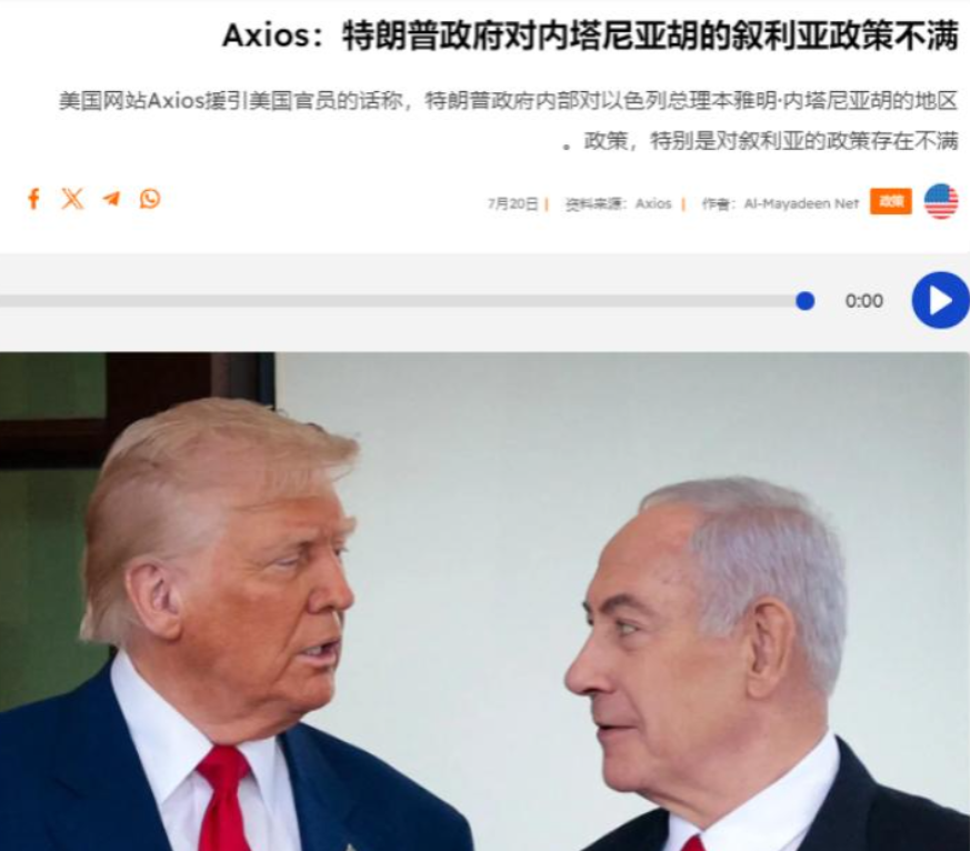 美国Axios援引白宫官员称,内塔尼亚胡此举严重干扰了特朗普在中东的战略部署。特朗普意图抽身中东,将重心转向亚太,但以色列的“越线”行动正引发美方不满。叙总统朱拉尼此前曾试图私下与以色列协调军事进场,却被内塔尼亚胡反将一军,苏韦达瞬间沦陷。