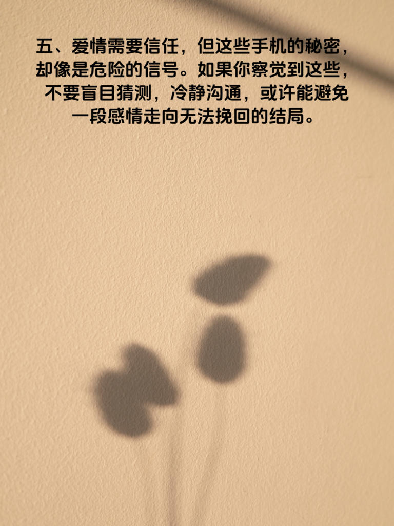 一、手机,在如今这个时代,已然成为了人们生活中不可或缺的一部分,它藏着无数的秘密,有时甚至能泄露情感的真相。当你发现她的手机有这几个秘密时,或许她的心已经开始游离。 二、首先,如果她开始频繁清理手机记录,聊天记录删得干干净净,相册里也找不到一些可疑的照片,甚至应用程序的使用痕迹都被刻意抹去,那就要小心了。这可能是她在努力隐藏一些不想让你知道的事情,很可能与出轨有关。 三、再者,她的手机密码突然更换,而且对你的询问遮遮掩掩,不愿透露。原本毫无防备的她,现在却对手机如此戒备,这背后或许有着不可告人的秘密,极有可能是她在和别人保持着特殊的联系。 四、另外,她总是避开你接电话,或者接起电话时语气慌张,眼神躲闪。手机一响,她就立刻找借口走开去接听,这些异常表现都在暗示着她手机里藏着见不得光的东西。 五、爱情需要信任,但这些手机的秘密却像是危险的信号。如果你察觉到这些,不要盲目猜测,冷静沟通,或许能避免一段感情走向无法挽回的结局。