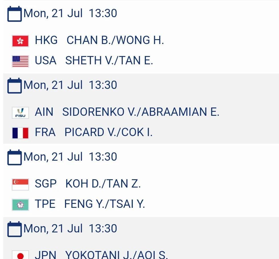 世界大学生运动会丨乒乓球混双16强! 第32届世界大学生运动会,乒乓球混双1/1