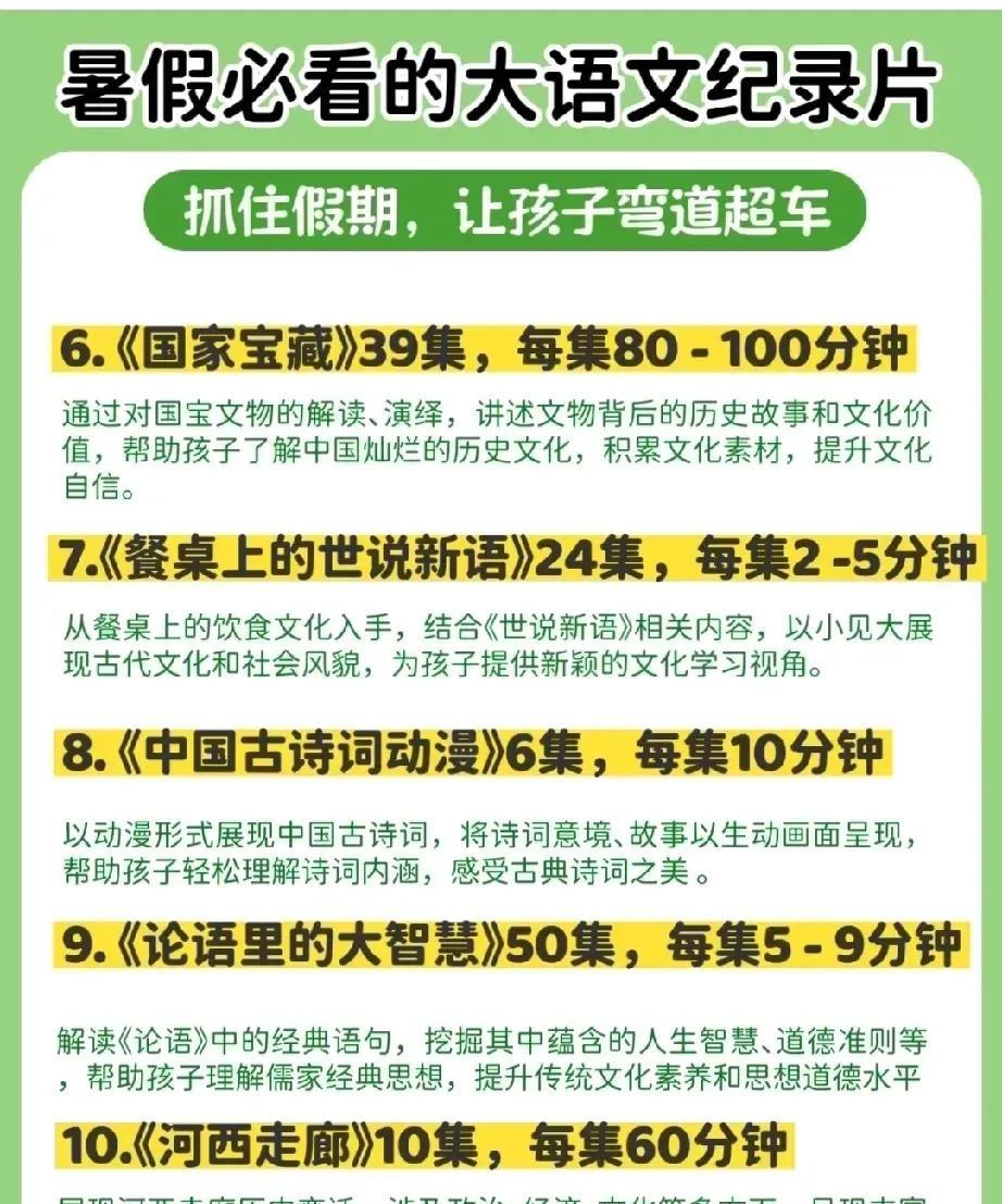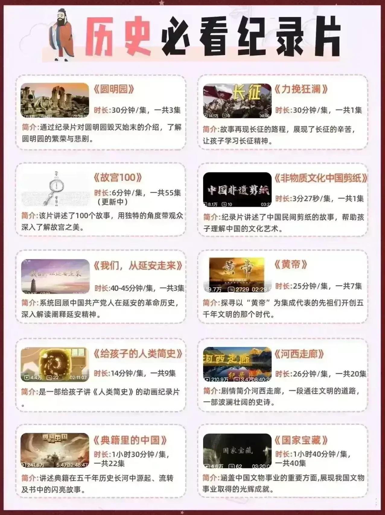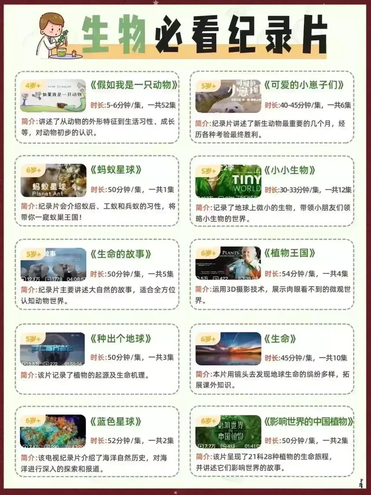 儿子7岁了,发现长脑子最快的方式是看纪录片,纪录片就是好老师,暑假足不出户走遍世界!央妈力荐神级纪录片,看完知识暴涨,眼界格局炸裂,智商情商远超同龄人!尤其是河西走廊纪录片,我连片头片尾都舍不得跳过。 不瞒各位家人们,我90后,小时候就特喜欢看纪录片,每天都要看,虽然一直到大学考的都不怎么样。但工作后发现纪录片里的知识对我的工作帮助极大。应该可以说是进入职业岗位的第一本实战教科书! 所以我发誓,暑假我就是自己宁可不上班,不让孩子上补习班,也要每天在家陪着自己孩子看看纪录片,一边看纪录片一边给孩子讲解!同时也建议那些家里有孩子没看过纪录片的,尤其是孩子学科成绩不上不下,或者是排名靠后的,暑假可以多放一些语数英,物化生,政史地,小四门等学科纪录片。 特别是对于那些幼小衔接,适龄启蒙的可以放一些幼儿启蒙纪录片,把枯燥的知识鲜活的呈现在孩子面前,让孩子激发内驱力,求知欲,探索欲,大脑瞬间开窍,尤其是1000部纪录片,打包带走,领域广泛、题材丰富,上知天文下知地理,包罗万象,一应俱全,没事的时候多看看纪录片,千万不要把生命献给无知! 【老师推荐】高分小初高小四门纪录片早教逻辑训练思维教具