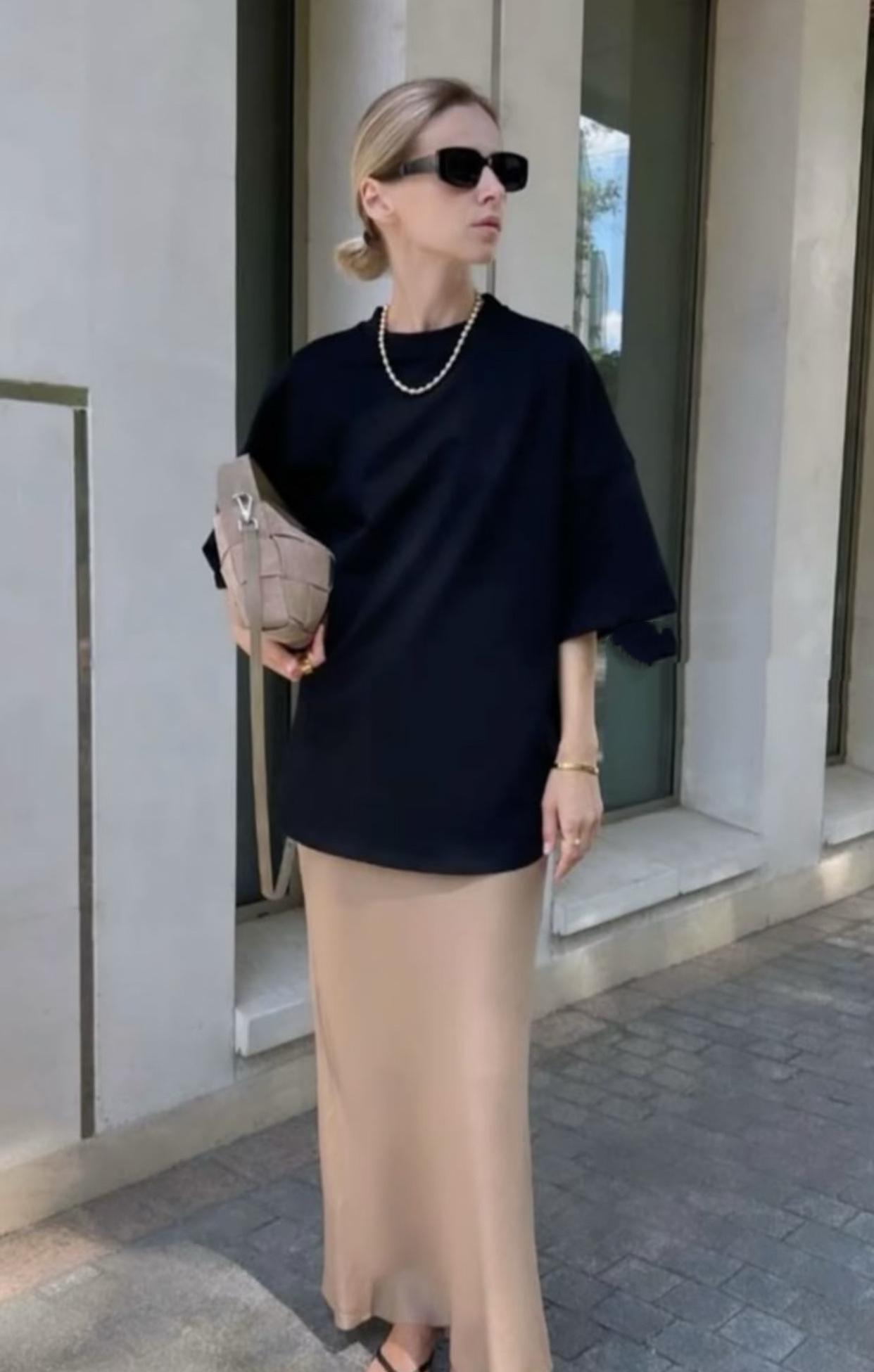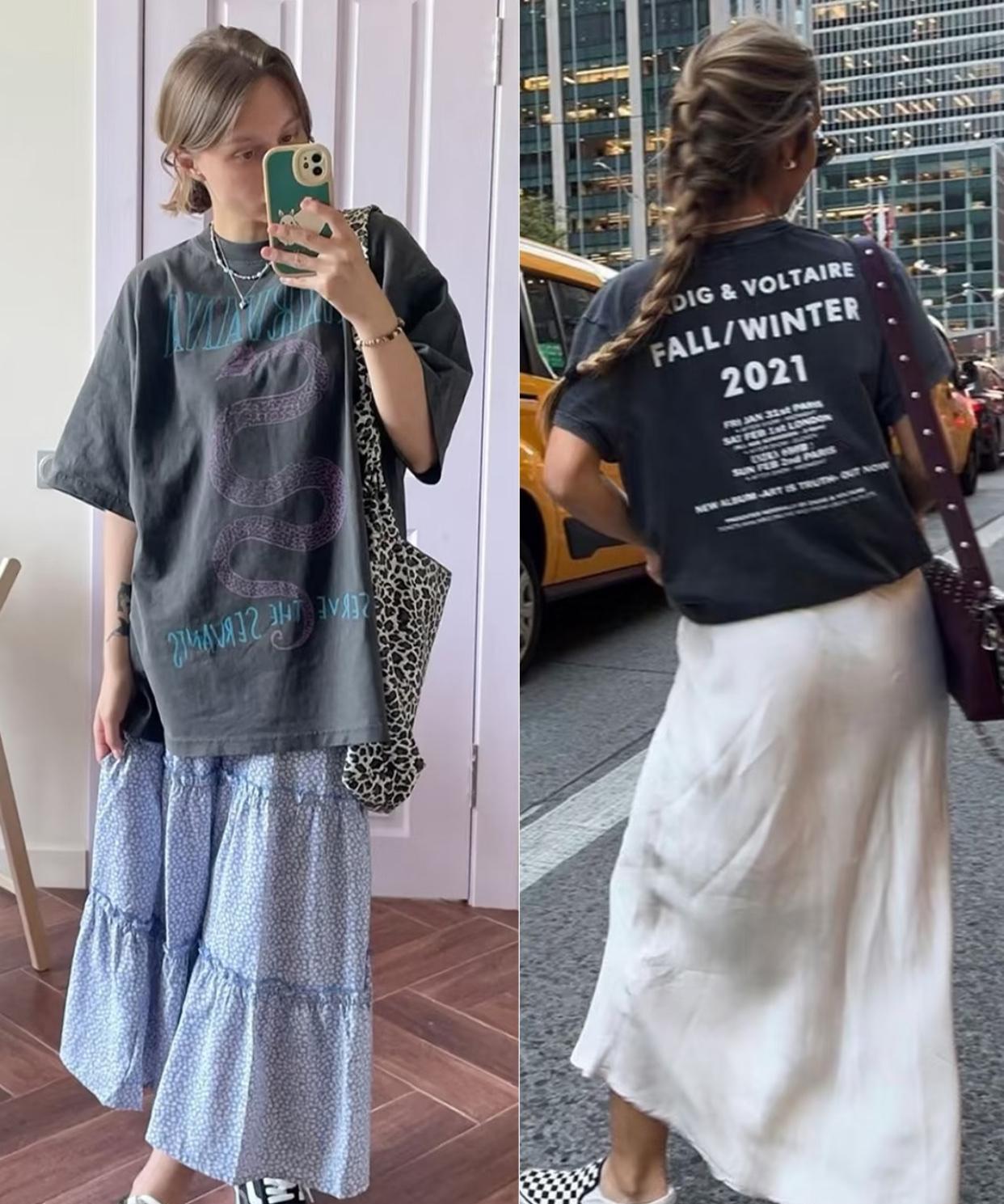 今夏裙子必须得是长裙啊,短裙已经out了! T恤配及脚踝长裙,年轻又优雅。最好有一件素色单品,简约休闲。 短直膝盖的裙子暂时先收到柜子里吧! #气质t恤裙# #修身t恤长裙# #休闲减龄t恤裙#