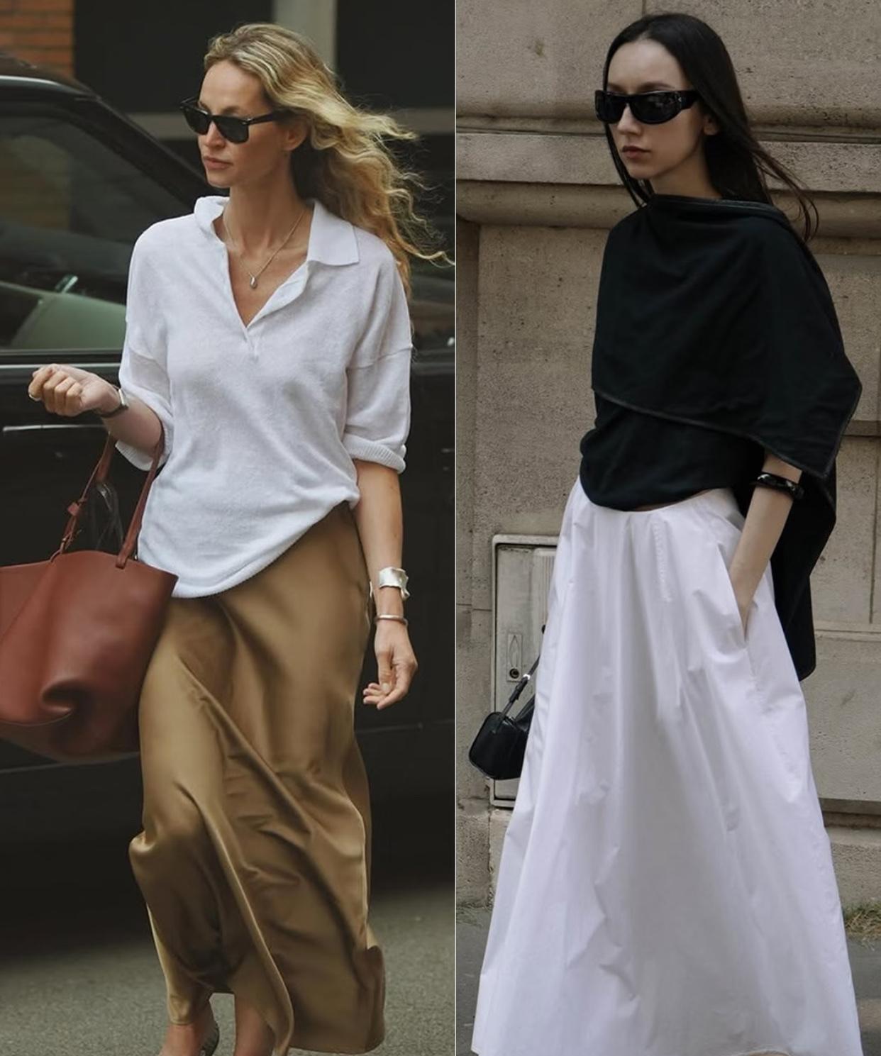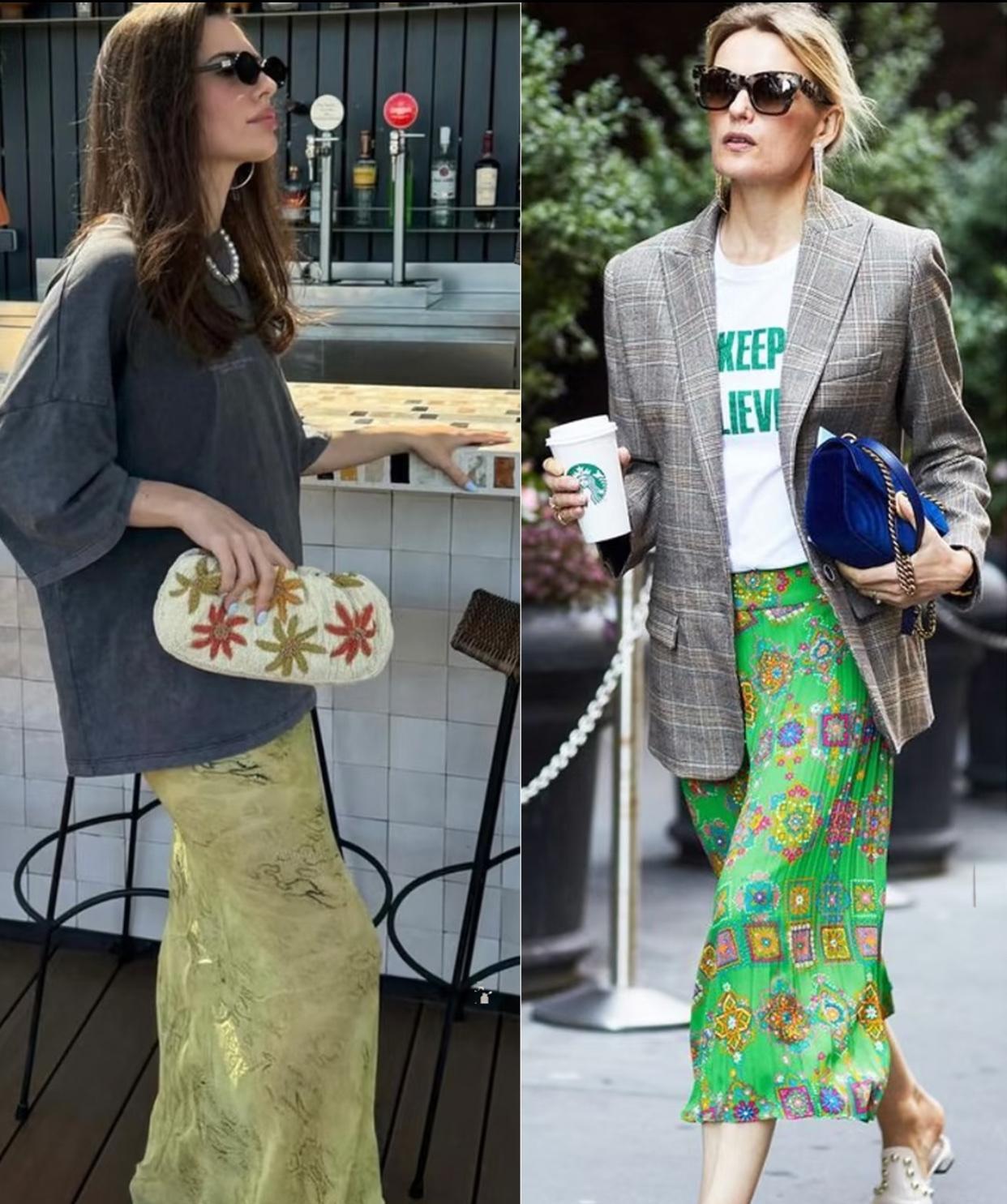 今夏裙子必须得是长裙啊,短裙已经out了! T恤配及脚踝长裙,年轻又优雅。最好有