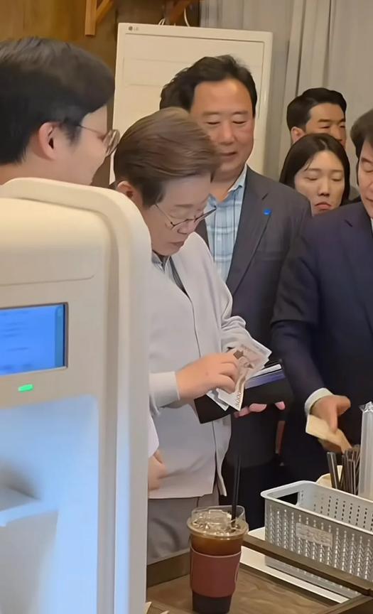 贵玲啊!冰美式咖啡好喝吗? 李在明去喝咖啡,旁边有人要替他付钱被拒绝,从钱包里数