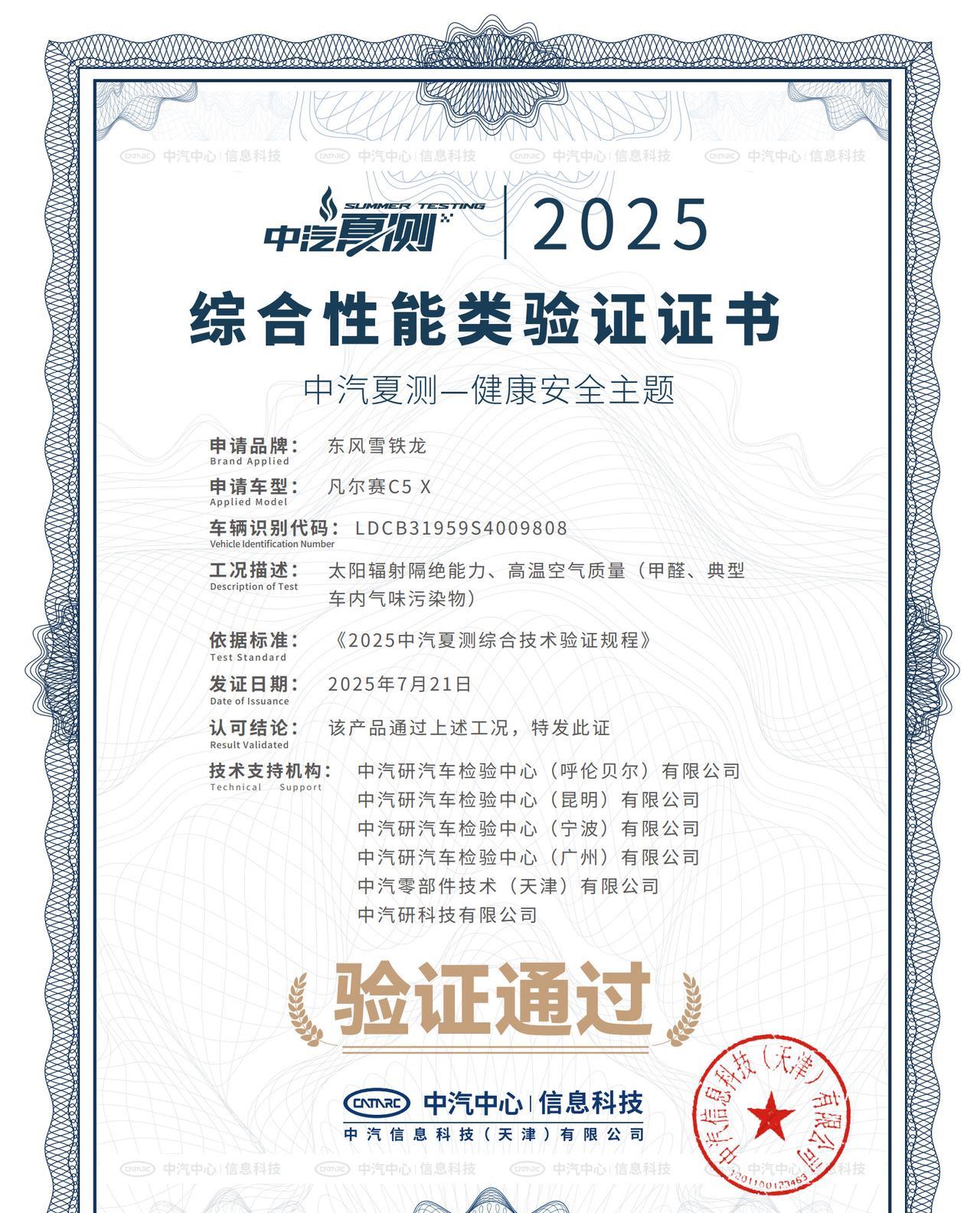 好久没听到法系车的声音了,凡尔赛C5 X参加2025中汽夏测,看看是怎么个事儿。测试分两个环节,一个是湿滑地面高速爆胎,一个是隔绝太阳辐射和空气质量,全是夏天多雨、暴晒场景的用户痛点,最后结果咱们看证书~挺有含金量。 法系车的底盘调校、车内用料环保,都是一贯特色,全景天窗和前风挡能隔绝大部分紫外线,夏天车内不燥,开着也舒服,安全。其实雪铁龙的安全基因能追到1924年,首款全钢车身B10,那会儿的汽车可都还用的是木质车架,领先了一个版本。【来自懂车帝车友圈】