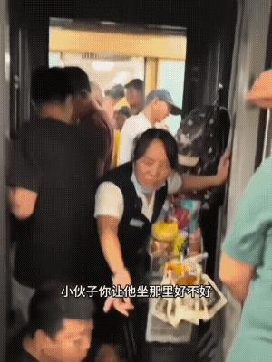 低声下气也未能打动他强硬的姿态,最后只好在其他乘客的帮助下把推车抬过去!