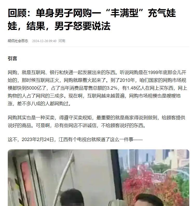 福建南平,男子花2098元网购了一个仿真娃娃当“老婆”!可是他选择“柳岩”丰满款的,商家却给他寄了偏瘦型的!而且下单才3天时间,商家就降价300元!所以男子要求退货退款,可商家却拒绝说:谁知道你和你“老婆”发生关系没有?影响销售不退不换! 一个普通的上班族花2098元网购仿真娃娃,想找个“完美老婆”,却收到错误款式,商家还降价300元,这事儿听起来就够离奇!更离谱的是,商家以“影响二次销售”为由拒绝退货,买家一怒之下把官司打到法庭。这场消费纠纷背后,到底藏着怎样的猫腻?商家的“惊天秘密”会是什么?这场闹剧不仅让人瞠目结舌,还揭开了电商灰色地带的一角,准备好一起看看这场奇葩官司的来龙去脉吧! 32岁的谢伟,人称小谢,是福建南平一个物流公司的普通文员,月薪3500块,日子过得紧巴巴。 他住在一个老旧小区的出租屋里,房间不大,家具都是二手货,桌上常年堆着方便面袋子。每天就是上班、下班、刷手机、看电视,生活简单到有点乏味。没车没房没存款,小谢在婚姻市场上完全没竞争力。加上看了太多狗血电视剧,里面全是结婚要花大钱、夫妻吵架的剧情,他对结婚这事儿有点怕了,觉得娶老婆不仅烧钱,还得受一堆气。 一次刷手机时,小谢无意中看到一个仿真娃娃的广告,号称能当“完美伴侣”,不用彩礼、不用哄人,还能解决生理需求。他觉得这东西简直是为他量身定做的!不用应付女方家里的各种要求,也不用担心被嫌弃,性价比高得不行。于是他花了好几天研究各种品牌和型号,最后看中了一款叫“柳岩款”的仿真娃娃,主要是因为这款号称身材丰满,特别像他喜欢的那个性感女星柳岩。2098块的价格对他来说不是小数目,但他咬咬牙下了单,选丰满款,想着这钱花得值。 三天后,快递到了,小谢满怀期待地打开箱子,结果傻眼了。娃娃根本不是他想要的丰满型,而是偏瘦款,跟网上宣传的图片差得十万八千里。更气人的是,他再去网站一看,同样的娃娃居然降价到1798块,才三天就便宜了300块!这感觉就像刚买完手机就发现降价促销,换谁都得炸毛。小谢赶紧联系客服,想问个明白。客服态度冷冰冰,说柳岩款只是脸部设计一样,至于身材,买家没特别备注尺寸,他们就发了默认的瘦款,还让他仔细看商品详情。 小谢哪能咽下这口气?他翻看了下单记录,确认自己选的是丰满款,商品页面上也清清楚楚展示着丰满型的图片,压根没提什么默认瘦款”。他觉得商家这是在耍花招,摆明了误导消费者。于是他提出退货退款,客服却甩出一句:谁知道你用没用过?这种私密产品,影响二次销售,概不退换!”小谢气得差点砸手机,觉得这商家不仅坑人,态度还这么嚣张,简直欺人太甚。 冷静下来后,小谢开始搜集证据。他把和客服的聊天记录、商品页面截图、订单详情都保存下来,发现商家的产品描述确实含糊不清,图片和实际商品对不上号。他还查了查消费者权益保护法,了解到如果商家存在欺诈行为,可以要求退一赔三。越想越觉得不能就这么算了,他决定把这事儿闹大,维护自己的权益。于是他先向南平当地的消费者协会投诉,没得到满意答复后,又直接把商家告上了法庭,起诉理由是虚假宣传和消费欺诈,要求退款2098块,外加三倍赔偿。 这场官司在南平的法院开打。小谢准备充分,带了一堆证据,包括下单时的页面截图、客服聊天记录和订单确认邮件。截图里清清楚楚地展示着丰满款娃娃的图片,文字描述也暗示这是“柳岩款”的主要卖点。庭审中,商家的代表辩称买家没仔细看商品细则,收到的瘦款娃娃符合“默认发货标准”,而且这种私密产品没法验证是否使用过,所以不能退货。小谢则拿出了证据,证明商家在销售时用丰满款的图片吸引消费者,却发了个完全不同的货,明显是故意误导。 法官仔细审查了双方提供的材料,重点看了商品页面和聊天记录。法院认为,商家在宣传中突出展示丰满款的图片,却没在页面上明确说明可能发瘦款,这种行为已经构成虚假宣传。根据《消费者权益保护法》第55条,商家存在欺诈行为,需退还货款2098元,并赔偿三倍金额,也就是6294元。判决下来,商家还得承担诉讼费,小谢这边只需要把娃娃寄回给商家。整个庭审持续了两个多小时,小谢终于拿回了属于自己的公道。 小谢拿到赔偿后,把娃娃寄回了商家,自己得了8000多块的退款和赔偿。这笔钱他没乱花,买了个新笔记本电脑,开始干点数据录入的兼职,想着多攒点钱,未来能过上更好的日子。这场官司让他看清了电商平台上的一些套路,也让他对自己有了点信心。他开始试着参加一些本地活动,想认识点新朋友,慢慢改变自己孤单的生活状态。商家那边被判赔钱后,口碑受损,网上不少人骂他们服务差、爱忽悠,生意也冷清了不少。 这起案子虽然听着奇葩,但背后反映的却是实打实的社会问题。2098块能买到幸福吗?小谢的经历告诉大家,钱能买到东西,但维权靠的是勇气和坚持。你觉得这事儿里,谁对谁错?要是你遇到这种坑,打算咋办?欢迎留言说说你的看法!