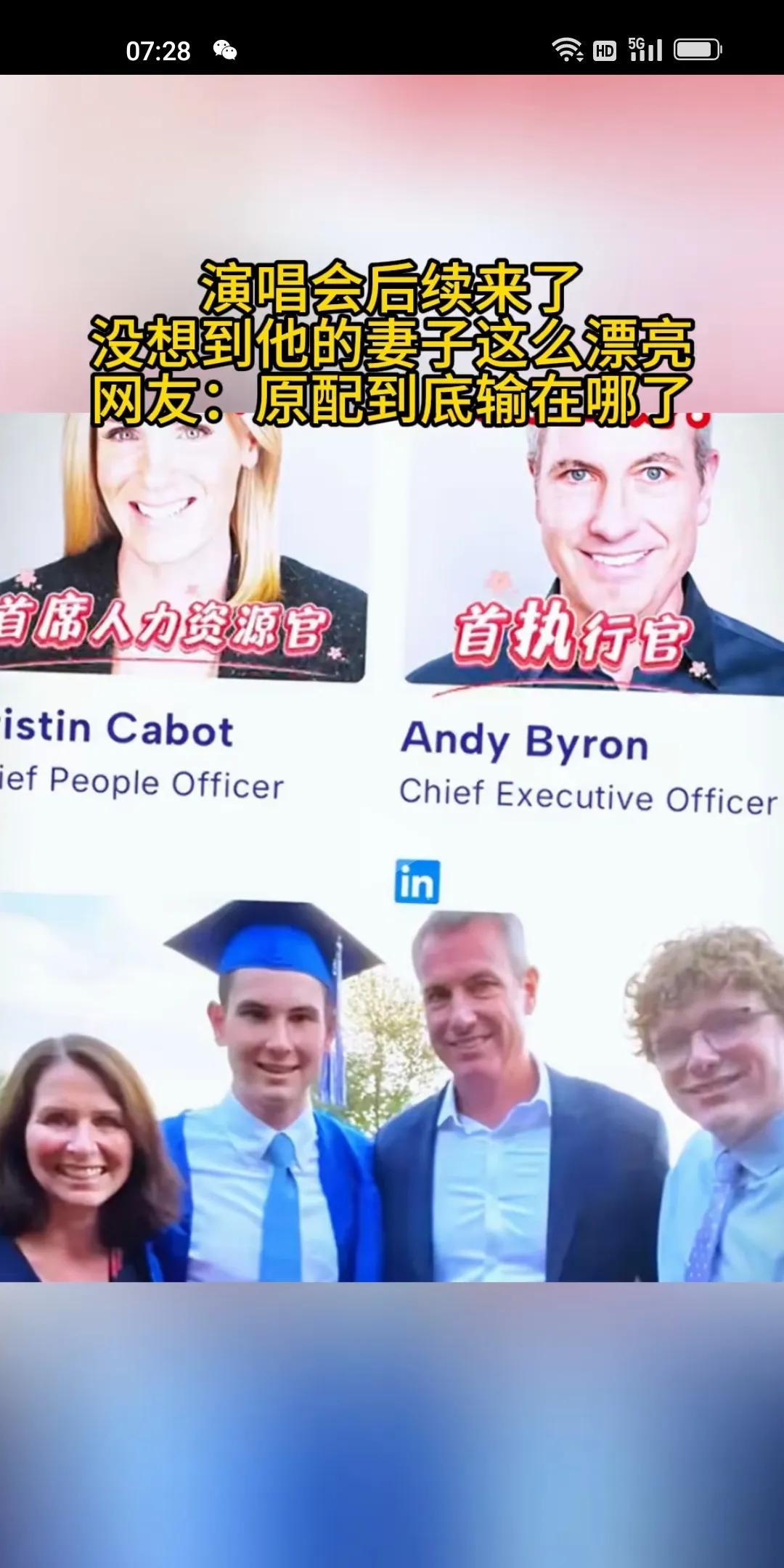正应了蔡澜先生说的,女人的可爱,不是漂亮的脸蛋,而是智慧的大脑! 他的妻子年轻又漂亮,还有四个孩子,生活多美满啊,可是他偏偏不在家守着孩子妻子,那么大岁数了,还去看演唱会。 看演唱会是假,借着机会去会情人才是真的。情人那么老,也不漂亮,为什么那么有吸引力呢? 只有一个解释,就是那个女人太聪明了。 这样的女人,不仅业务能力强,而且情商也非常高,知道怎么拿捏男人。 能做到首席人力资源官的位置,能力非同一般。聪明的女人,最能吸引男人的注意力,在男人眼里,这样的女人是最有魅力的。 说到底,还是因为他俩各方面是同频的。说话能说到一起,还能能玩到一起,都爱看演唱会。能做到一起,工作上是最好的合作伙伴。 所以说,蔡澜先生说的对。 #晒图笔记大赛#