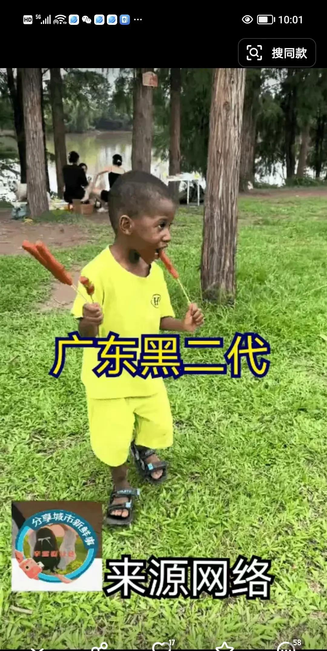 黑人在中国真幸福,这是广东某地景区一名黑人儿童在游玩的时候,开心的吃着烤肠。 你