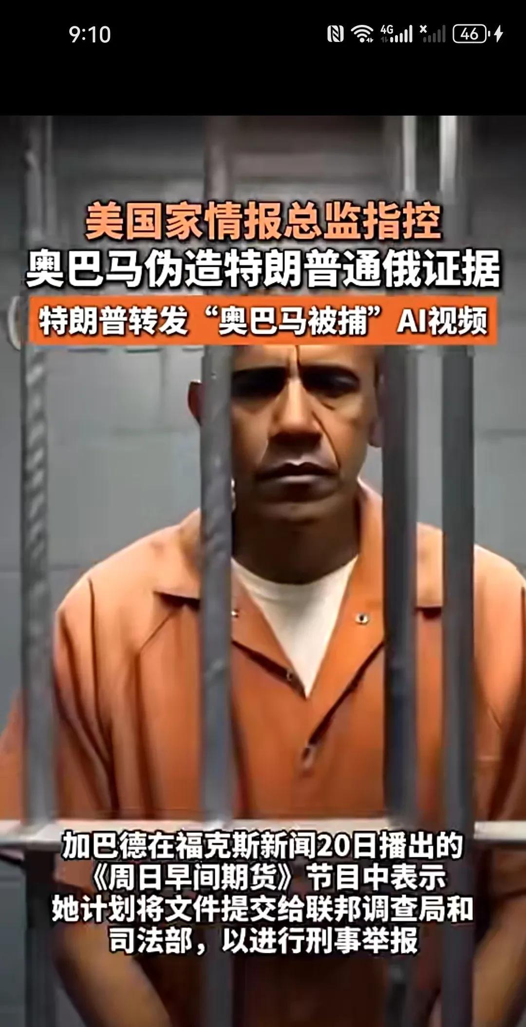 特朗普是来搞笑的,但是很接地气! 美国家情报总监指控奥巴马伪造特朗普通俄证据,特朗普转发“奥巴马被捕”AI视频! 这个牢笼的奥巴马好像AI速度与激情5里面男主之一,不信你们可以去看看速度与激情5……… 其实特朗普应该得好好为自己将来退位后想好后路,不然估计得很惨!