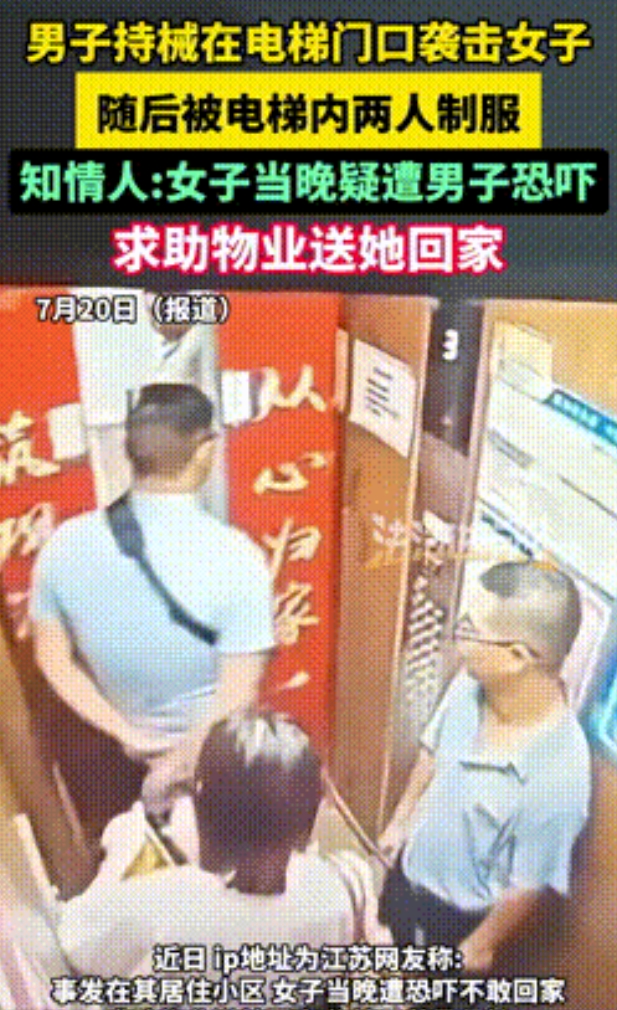 “必须严惩!”江苏,女子离婚后收到前夫恐吓短信,吓得请求2名物业大哥护送回家,不料电梯开门一瞬间,一把消防斧当头砍下!最前面的大哥机警躲过,随后猛冲上去,火速夺走斧头,场面帅爆了!网友:这是故意杀人吧?[太阳]