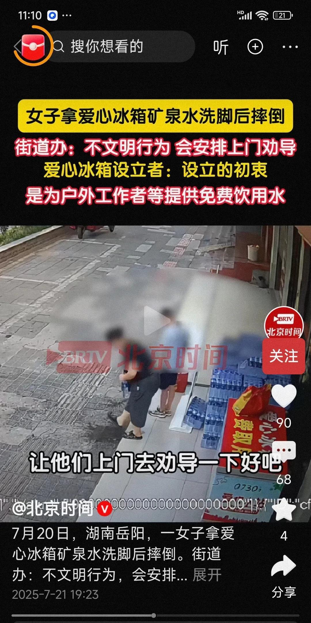 666这报 应来的太快了吧!烧烤店门口设“爱心水”,女子带着两个孩子经过,拿了一瓶水,洗脚,洗鞋,不料,下一秒“呲溜-嘡”直接滑倒,两个孩子站在旁边不知所措,也不知道拉妈妈一把? 看到这里忍不住乐了。本来还想着骂她两句,现在她自己已经“跪了”,这报,应来的也太快了吧!估计膝盖太酸爽了。 希望两个孩子吸取妈妈,的教训,把这些爱心水留给更需要的人,自己不付出爱心,更不能践踏别人的良心。