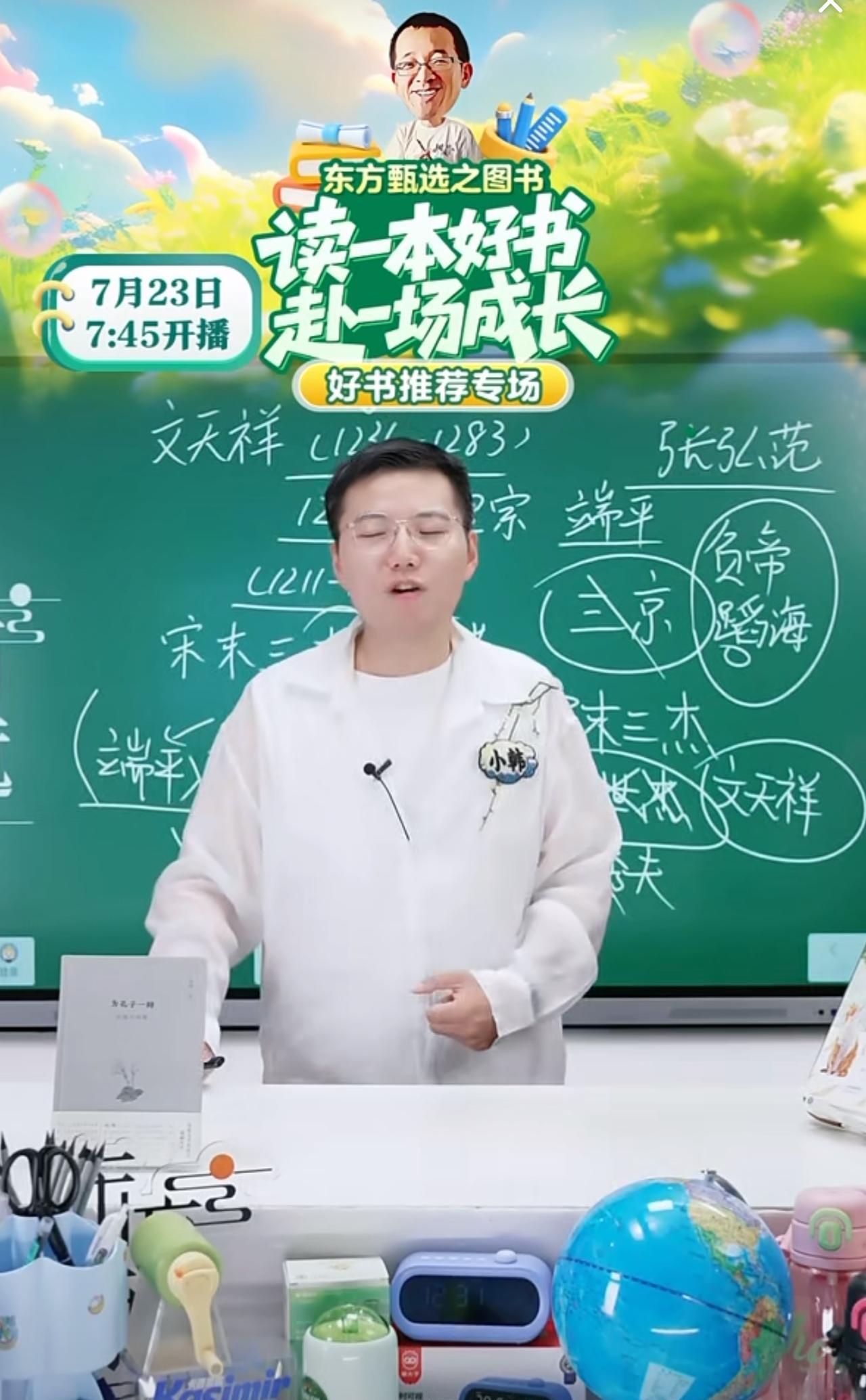 看着小韩在生鲜号不停的外场直播,以为他不会再回到图书号为大家分享知识了,今天中午打开手机一看,发现小韩在图书号分享一些历史知识,好像回到了之前小韩在图书号讲《红楼梦》的时候。今天直播的时候小韩我们要从历史中去寻找温暖。 小韩无论在哪一个号直播都充满了激情,在图书号直播的时候,他一直都问温文尔雅的谦谦君子,大家都以为他是一个温和内敛的主播,直到他去了生鲜号在一次又一次的外场表现,大家发现原来小韩是具有两面的,在外场的他不顾形象的大声呼喊,声嘶力竭的介绍产品,他在那个时候他只想让业绩更好一些。 小韩在生鲜号外场的表现获得了东方小孙的表扬,东方小孙说小韩外场表现太好了,还要给他多多安排外场直播。