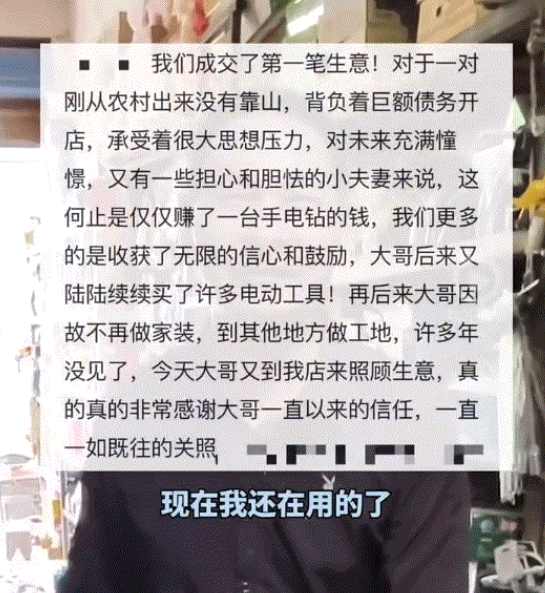 江苏,男子去五金店买东西,结账时被老板娘盯着看!男子有点慌,以为对方有什么想法,结果,老板娘竟然不收他钱,说这单免费!男子懵了,自己和对方非亲非故的,为啥要免费?直到老板娘说出原因,男子才恍然大悟! 在江苏南京的街头巷尾,五金店如同城市脉络里的毛细血管,默默为人们的生活提供着便利,一天一个男子走进了一家五金店,挑选了几样东西,准备结账,可就在这时老板娘那双眼睛紧紧地盯着他,男子心里顿时咯噔一下,有点慌了,他以为老板娘对自己有什么不好的想法,是不是自己哪里做得不对,或者东西有什么问题。 他局促地站在那里,搓了搓手,小心翼翼地问:“老板娘,我……我买的东西有问题吗?”老板娘没有说话,依旧看着他,眼神里带着一种复杂而熟悉的感觉,终于老板娘开口了,但说出的话却让男子彻底懵了:“这单免费,你走吧。” 男子愣在原地,自己跟老板娘非亲非故的,她为什么要免费给自己东西?他满腹疑惑地看着老板娘,试图从她的眼神里找到答案,原来在20年前,老板娘和老公从农村来到南京,背着沉重的债务盘下了这家五金店。 头一个星期店里连个问价的都没有,夫妻俩蹲在店门口,看着人来人往,急得直掉泪,他们做梦都想着能把店经营好,还清债务,重新开始生活,那时候生活就像一座大山,压得他们喘不过气来。 就在他们最绝望的时候遇到了一个好心人,一个年轻的小伙子走进了他们的店,看他们愁眉苦脸的样子,就主动跟他们聊了起来,小伙子知道他们的困境后,不仅买了不少东西,还鼓励他们坚持下去,说只要肯努力,一定能把店经营好,那小伙子就是眼前的这个男子,只是这么多年过去了,他变化很大,老板娘一眼就认出了他他却没认出老板娘。 老板娘回忆起当时的情景,眼眶都红了,男子听到老板娘的话,眼泪瞬间就流了下来,他想起20年前那个阳光灿烂的下午,自己确实去这家五金店买过东西,还跟老板娘和老板聊了很多,那时候的自己年轻气盛,觉得帮助别人是一件很自然的事情,没想到这一小小的善举,竟然被他们记了这么多年。 从五金店出来,男子心里暖暖的,他没想到,一份20年前的善举,竟然得到了这样的回报,他想,自己以后也要多做一些好事,说不定哪天,也会有人像老板娘夫妻俩一样,记着自己的好。 这件事情在网络上引起了广泛的关注,网友们纷纷发表了自己的看法,一位网友留言道:“这个老板娘真的太让人感动了,20年前的一个小小善举,她一直记在心里,还想着办法报答,这个世界还是好人多,希望我们都能多做一些好事,让这个世界变得更加温暖。” 另一位网友则表示:“看到这个故事,我眼睛都湿了,有时候,我们不经意间的一个善举,可能会改变别人的命运,就像这个男子,他当时可能只是随口说了几句鼓励的话,却让老板娘夫妻俩有了坚持下去的勇气,我们应该向老板娘夫妻俩学习,感恩别人的帮助,也要多去帮助别人。” 在这个快节奏的社会里,我们常常忽略了身边的小美好,却不知道,一个小小的善举,可能会在未来的某一天,带给我们意想不到的惊喜,让我们都多一份善良,多一份感恩,让这个世界充满更多的爱与温暖。 对此你怎么看?欢迎大家在评论区留言讨论。