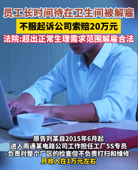他们的意思很明确:你要是身体不舒服可以请假,公司也不会不通情理,可你一边拿工资,一边几乎每天有一半时间在厕所刷视频,公司不能当没看见。