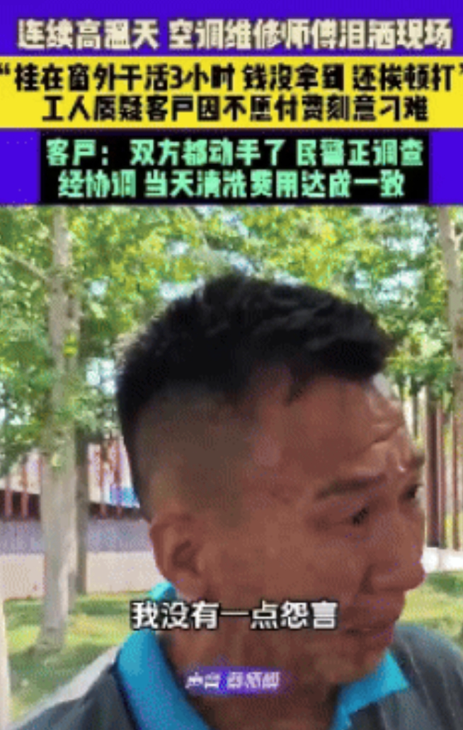 河南周口有个修空调的蔡师傅,心里头别提多憋屈了,大太阳底下,人家在窗外挂着修了3个小时空调,结果钱没拿到手,反倒挨了顿揍。