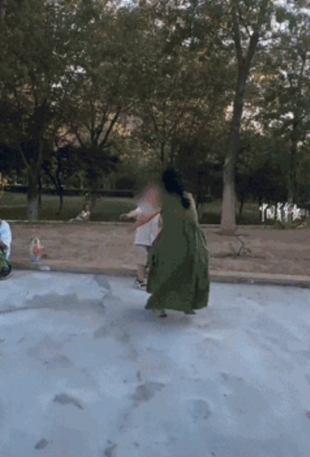 她开始在公园里四处奔跑,一边大声呼喊着孩子的名字,声音因为紧张和焦虑而变得沙哑。