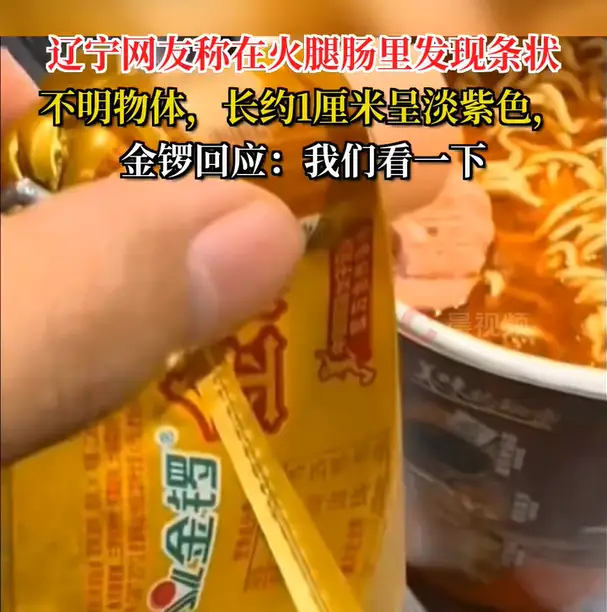 辽宁,网友称在火腿肠中发现不明蠕动物,长一厘米,呈现蠕动物体状态,偏紫色。网友对此发布了视频,目前金锣回应,称会看一下,并且会调查处理。我们期待后续的报导、持续关注。
