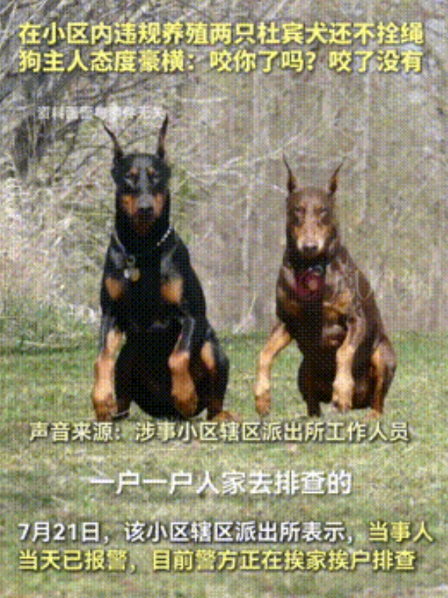 “这种人就该治一治!”江苏丹阳,一女子带着两条未拴绳的杜宾犬出行,结果两条大狗一下车,就冲着2岁幼童冲过去,吓得家长怒骂“打死狗”,谁知女主人嚣张发言,咬你了吗?你要打死谁!网友:禁养犬还不栓绳,必须查收她的狗![太阳]