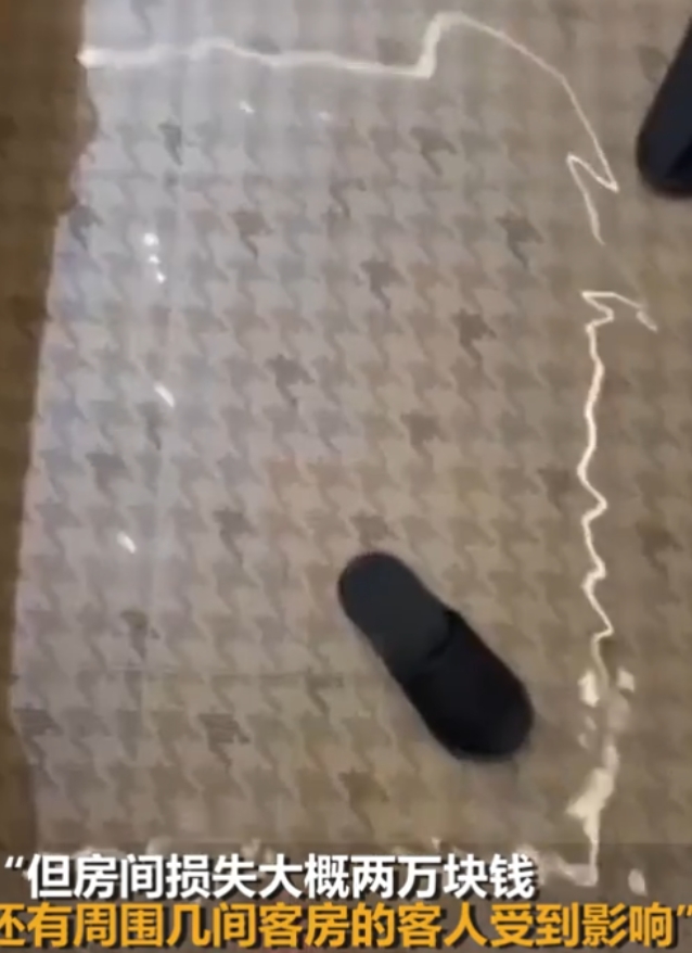 后来酒店算了算损失,房间里的地毯、家具、电器,加上楼下客人的赔偿,总共得两万块左右,女子也知道是自己的错,挺不好意思的,当场赔了两千块,但酒店后来表示,这两千主要是赔给楼下客人的,房间的损失还得另算。