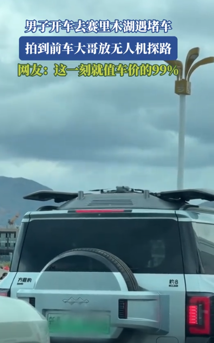 “有钱就是这么随性!”新疆,一男子开车前往赛里木湖,途中遇上堵车,他情急之下启动车上的无人机去探查前方路况。无人机侦查归来,稳稳落在车顶,而接下来发生的一幕,让后车司机大为惊叹。 据吉安电视报7月18日报道,男子开车去赛里木湖遇堵车,拍到前车大哥放无人机探路。 7月正是新疆的旅游高峰期,来自全国各地的游客像“赶大集”一样往赛里木湖奔,结果那条通往景区的公路直接堵成了大型“汽车展览会”。 一眼望去,车子挤得密密麻麻,别说动了,连开门下车都得侧着身。 就在大家都快被闷坏了,有人干脆拿出小马扎准备开茶话会的时候,队伍中间有辆车的车顶突然“动”了起来——不是车着火了,而是车主从顶上的仓里掏出一架无人机,熟练一按遥控器,无人机“嗖”地一声就飞出去了。 它就像一个小侦察兵一样,直奔前方“战场”,周围的司机一下来了精神,纷纷围过来看热闹,有的还打趣:“这车主是带外挂来的吧?” 几分钟后,这架无人机像认路似的准确无误地飞了回来,还自己稳稳地降落在车顶“停机坪”上——而这个停机坪更牛,它还能自动闭合、固定无人机,完全不需要手动操作,科技感拉满。 这一幕被后方的一位司机拍下来上传网络,结果火速出圈。 有网友笑称:“自驾堵车也能飞无人机看情况,这才叫科技与狠活!”还有人感慨:“人家是真正的旅行玩家,不是光拍照凹造型的。” 不过也有不同声音。有些人觉得这种设备太贵了,不是普通人能玩得起的,还有人担心:要是大家都飞无人机,那天上不就成“空中菜市场”了? 这类车顶无人机设备已经有不少车企在研发,有的系统精准到落点误差只有几厘米,除了看路况,还能拍航拍大片、搜寻露营地,功能真的很多样。 但随之而来的问题也必须重视,比如空域管理、安全风险等,不能“你想飞就飞”。 科技确实能让旅行更方便,但也别忘了安全和规范。 车顶无人机虽然酷,但也要看场合、守规则。 也许不久之后,车顶无人机真会成为自驾游标配。 想想以后堵车的时候,大家不再是叹气下车抽烟,而是“各放无人机看前线”。