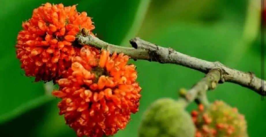有一次在水边钓鱼,半天鱼也不咬钩,闲来无事,注意到旁边有棵构树,结着红红的果子,