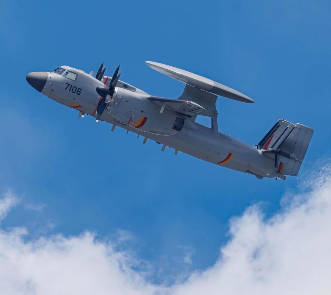 海军航空兵空警-600舰载预警机的空对空清晰照片。摄影师能在如此近的距离拍摄,公开发布的图像质量很高,应该是专职部队摄影师拍的。