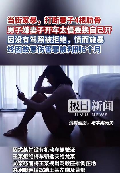 “求求你,不要再打我了......”2025年7月,湖北枝江市的一处红绿灯路口,监控摄像头记录下了令人窒息的一幕:一名男子突然将驾驶座的妻子拽出车外,在众目睽睽之下用脚猛踹她的背部,直至她蜷缩在地,痛苦呻吟。 而这场殴打的起因,仅仅是妻子开车"太慢"。 案发当天,王女士驾驶车辆载丈夫返家。行驶至枝江市区某红绿灯处时,尤先生突然以"车速过慢"为由要求换驾。由于尤先生并未取得机动车驾驶证,王女士拒绝交出钥匙。 这一拒绝瞬间点燃了尤先生的怒火,他强行将妻子拖出驾驶座,随后用脚连续踩踏其胸前及背部! "他像疯了一样,完全不顾路人的尖叫和劝阻。"一位目击者回忆道,"最让人心痛的是,他们的孩子还在后座哭喊,但尤某头也不回地开车走了。" 尽管尤先生犯罪手段恶劣,但法院综合考虑其认罪认罚、主动赔偿部分医疗费等情节,最终仅判处有期徒刑六个月,并需赔偿王女士剩余医疗费17000元。 讽刺的是,类似案件中,若施暴者与受害者无亲属关系,刑期通常更长。例如,湖南曾有男子因纠纷致人轻伤一级,被判1年7个月。这种"同伤不同判"的现象,暴露出司法实践的困境。 案件曝光后,王女士的邻居透露,这并非尤先生第一次施暴。"她身上常有淤青,总说是自己摔的。"这种长期隐忍的态度,正是许多家暴受害者的缩影。 正如一位网友所言:"对待家暴的态度,丈量着一个社会的文明程度。" 最后,您怎么看呢?欢迎在评论区发表您的见解! 信息来源: 极目新闻|男子因嫌妻子开车太慢 当街打断妻子4根肋骨 文|知又 编辑|南风意史