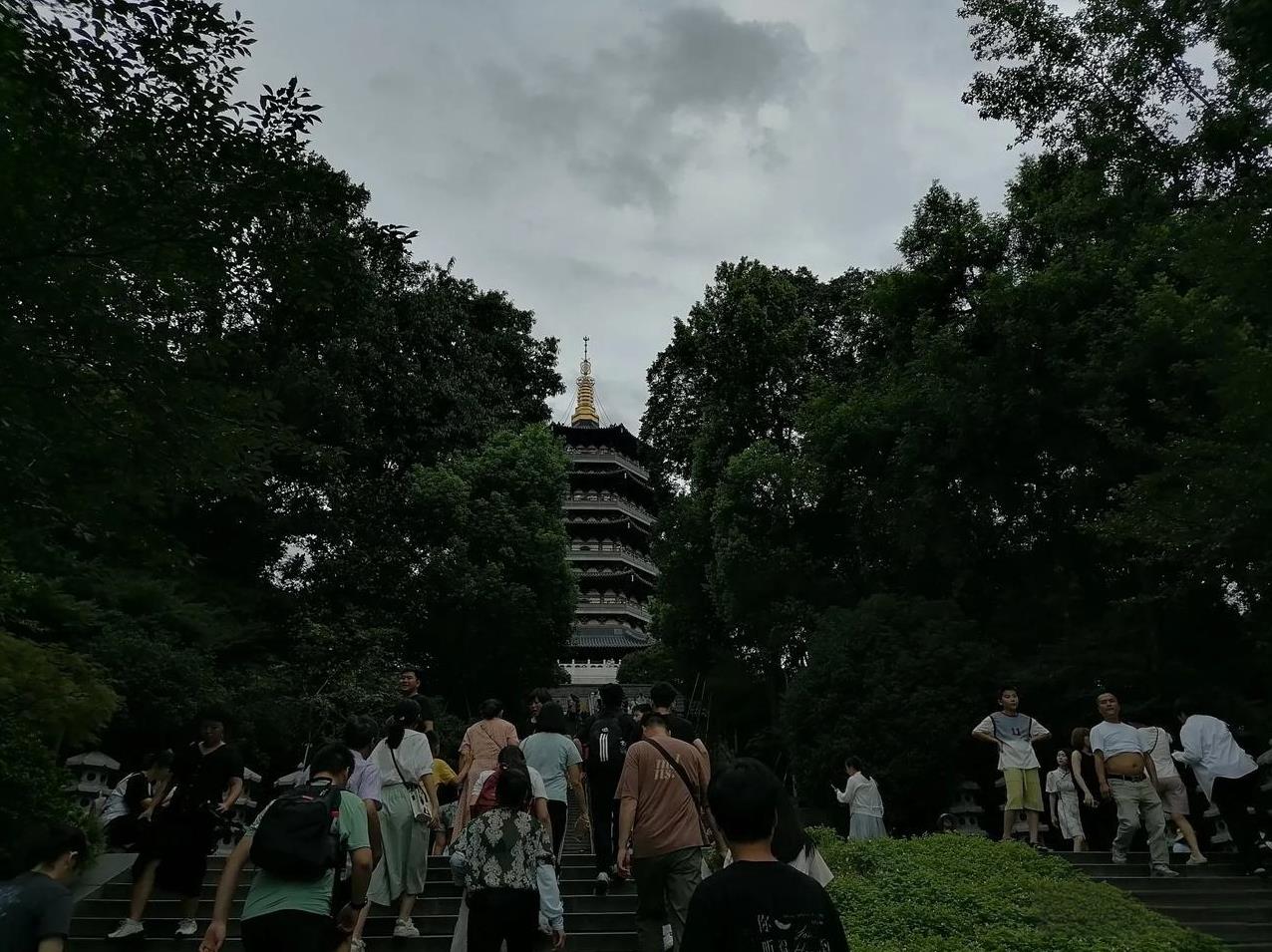 雷峰塔遗址上建雷峰塔。 原雷锋塔1924年9月25日彻底倒塌。1999年7月,浙江省重建,于2002年10月25日竣工开放。 因雷峰塔建在雷锋山上,因此得名雷锋塔。 门票40,值得一游。 缺点就是参观的人太多,电梯都得排长队才能轮上,步行梯倒是也有,就是每层都步行有点累。