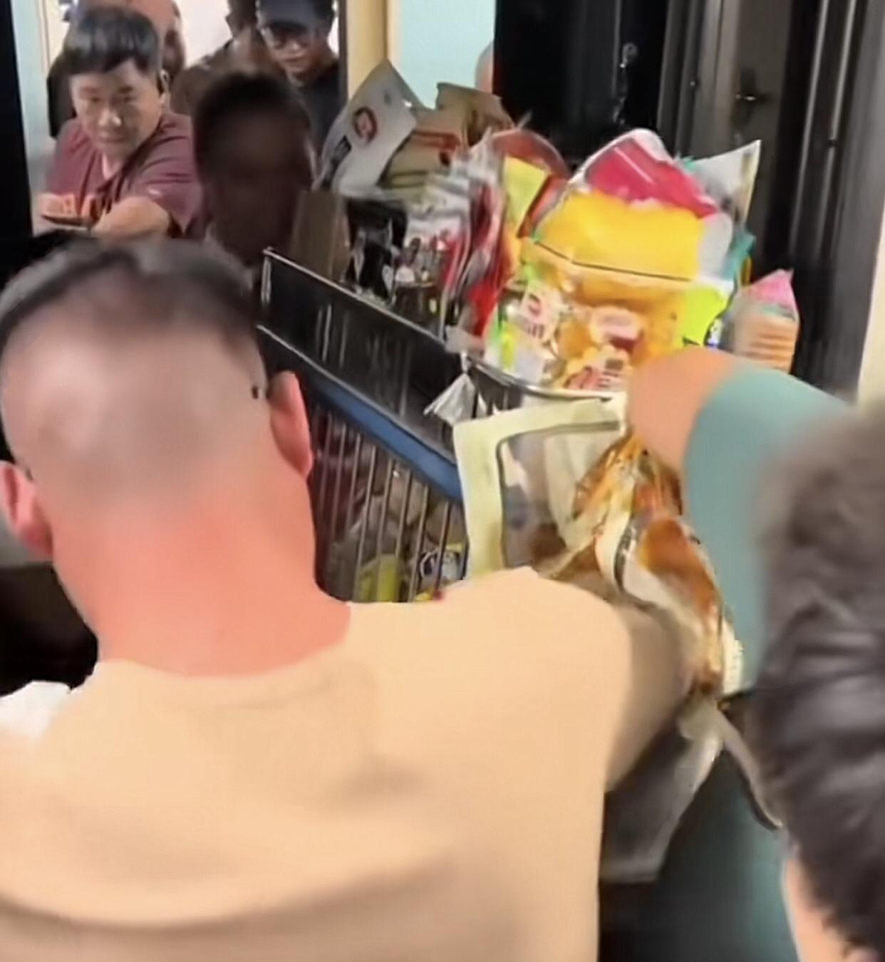 这不是无赖,是缺德!一辆绿皮火车,车厢挤满了人。 女售货员推着售货车想着过另一节