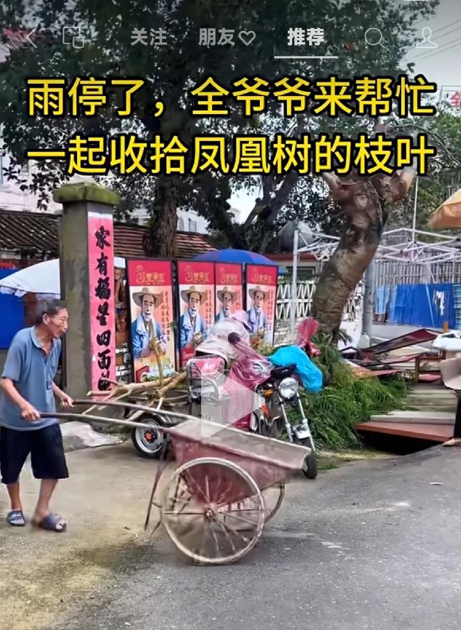 刚刚,婵宝爷爷一起来干活了 ,韦帕台风走了雨也终于停了,婵宝爷爷推着抖车出来,跟