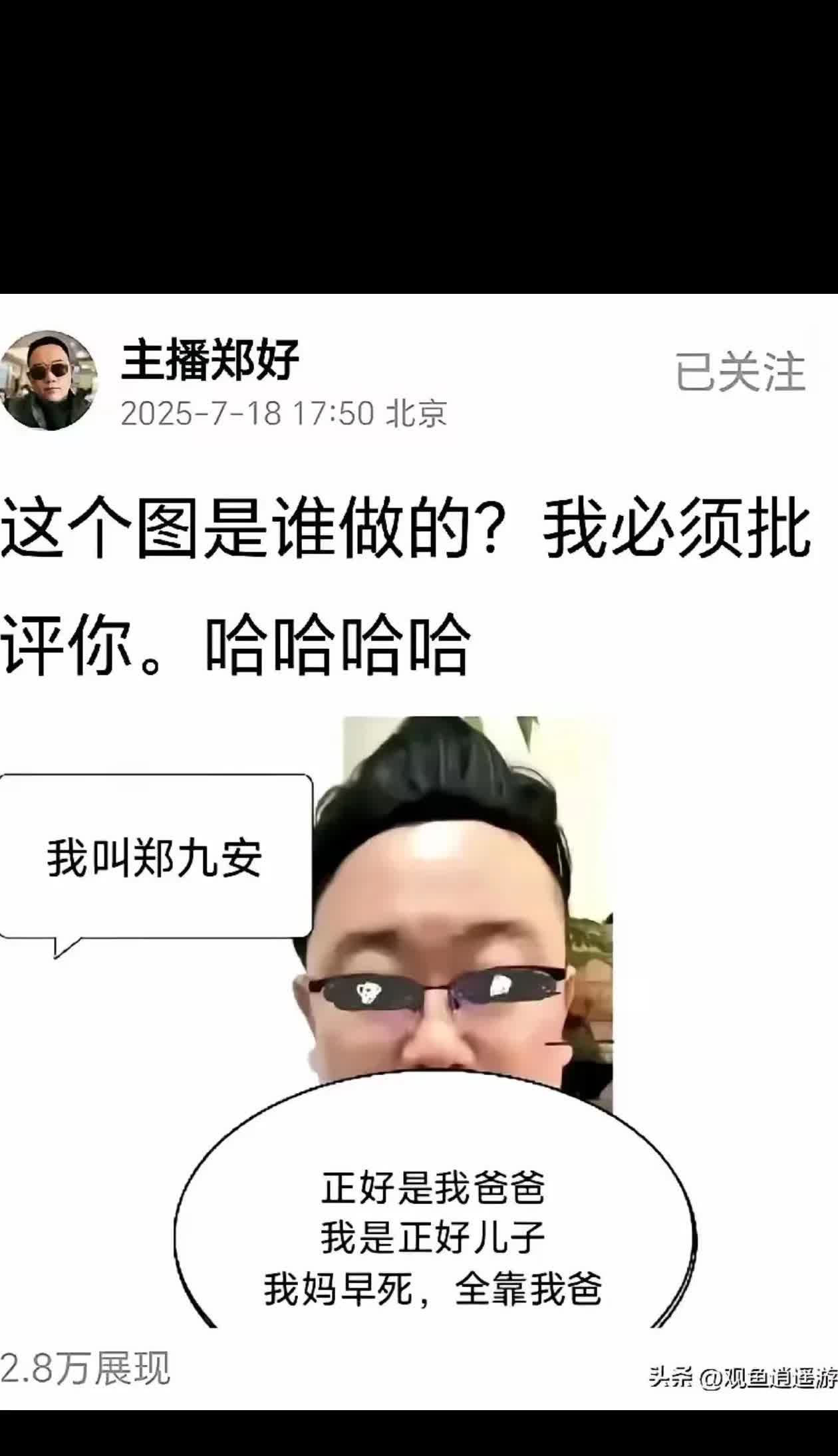 戴九安发的图片被举报下架! 戴九安发一个图片下架了,但有被网友提前截屏了,里面没有提示名字,但是从图片外表大概能猜出是谁。戴九安发这个图片是反击反骂孬子之前发的一个骂脏街的一个图片,孬子发的图片是有名字的,只是换了一个字:郑九安,而且骂的太过份。 目前双方发的图片都已经没有了,因不知道孬子的切片是被举报还是自己删除的。 平台当然不允许这样的无底线骂脏街相互仇视的攻击行为,也让人觉得主播们胸襟和素质太低,造成的影响太恶劣。