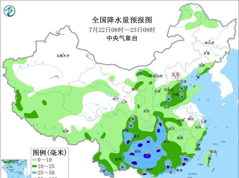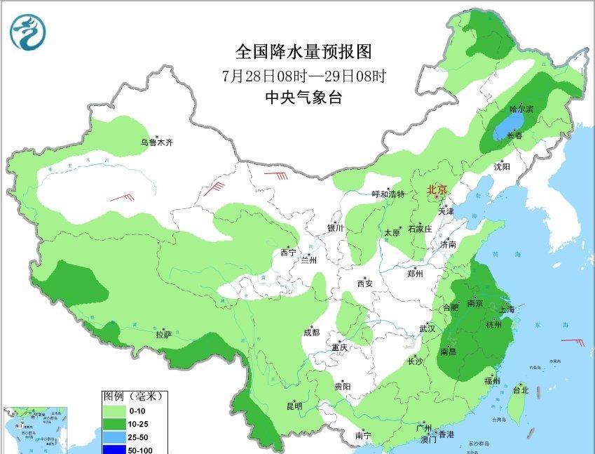 根据中央气象台预报,未来十天我国西南中南部、华东大部、华北中北部、东北中部降雨偏