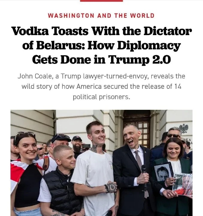 事情是这样的,特朗普乌克兰问题特别代表凯洛格的副手约翰·科尔最近在明斯克和卢卡申科共饮伏特加,为的是协商释放美国囚犯。