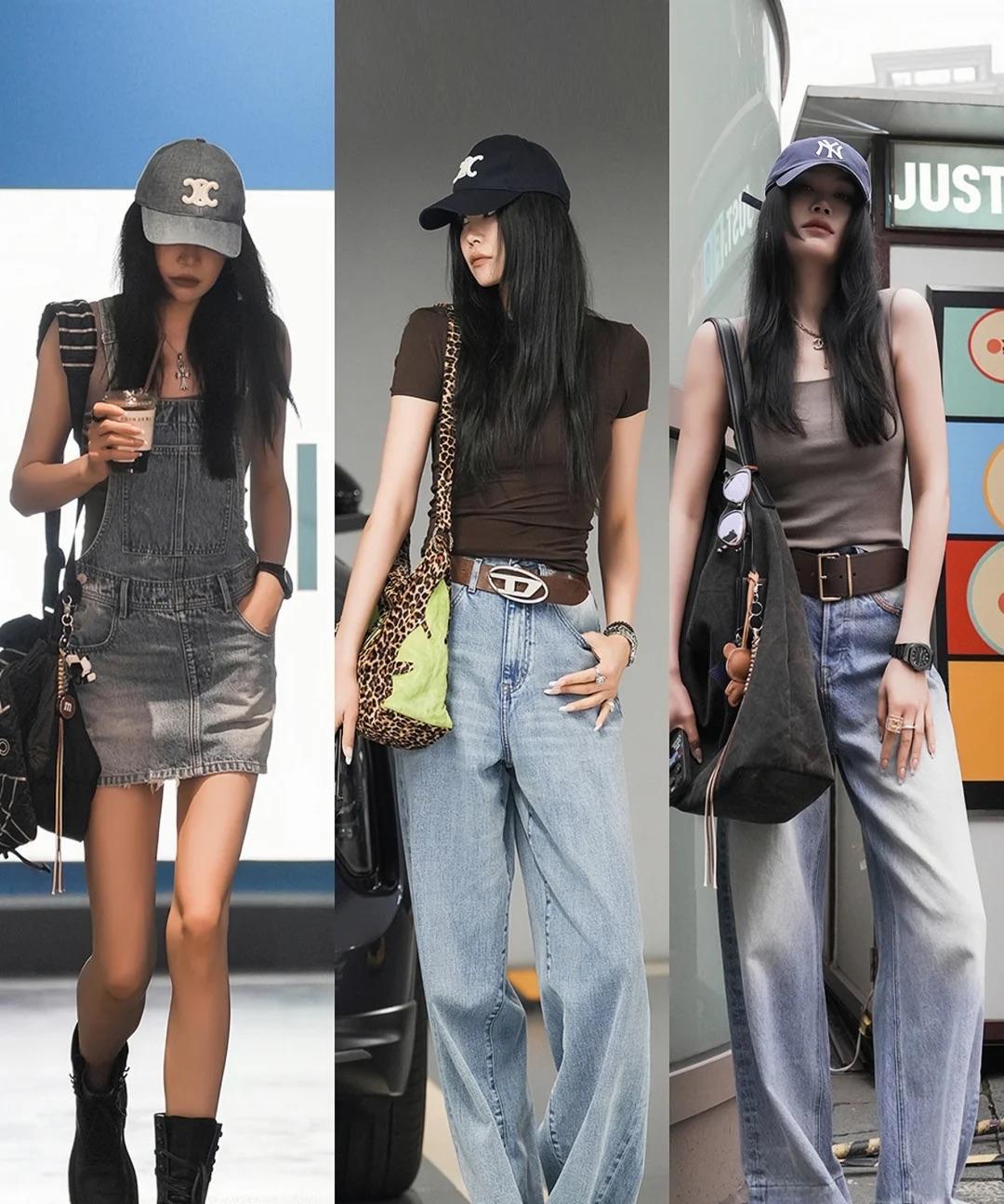 这样出街超酷呀,清凉时髦又显瘦,小个子也可以抄作业! 夏季非常适合穿短裤,超短牛仔短裤搭配一条修身的背心,穿出时髦的辣妹风,配棒球帽短靴更酷! 阔腿裤的出街的也蛮高的,挑选拖地的长度更加的随随性松弛。 上衣依然是选择短小的设计,可以更好的拉长比例,配大托特包更有氛围感。