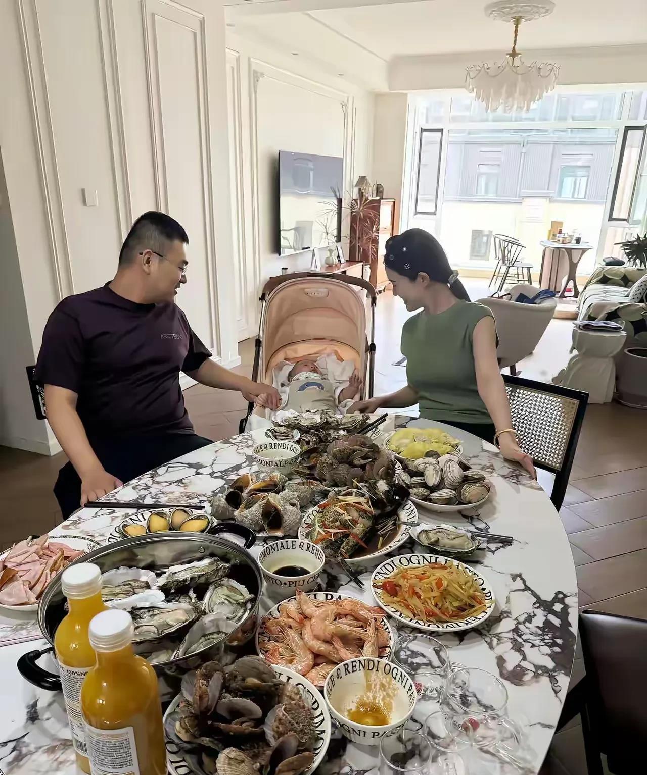 正常人谁吃家常饭一桌子全是海鲜,来点蔬菜 肉类搭配不是更合理吗。