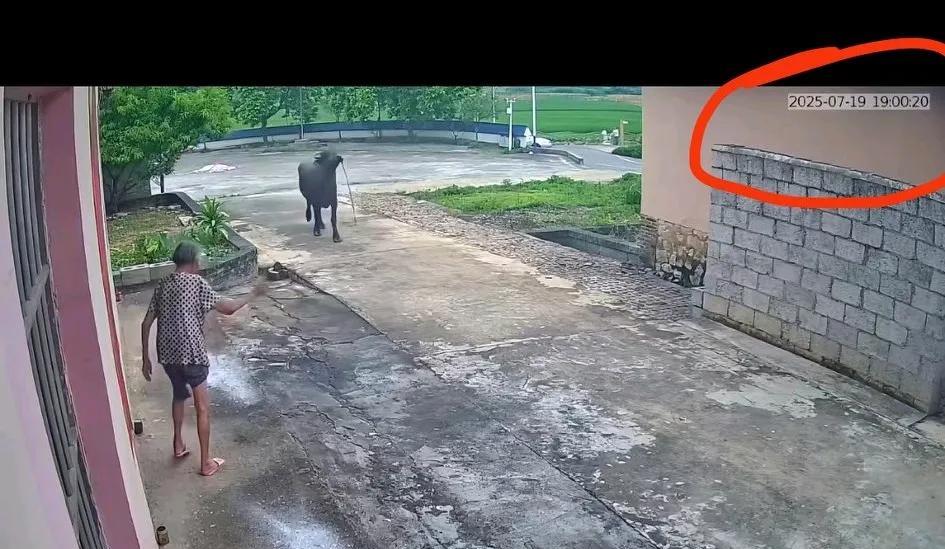 老太太悬了!牛劲牛劲,那可不是闹着玩儿得啊! 我们这里形容人或者动物的脾气古怪、说翻脸就翻脸,叫“藏性”。 牛,就“藏性”!我感觉它们比马脾气还大,尤其是自个溜达的牛,相当于按着发射开关的迫击炮。 老太太看见牛,先关上门躲里面就好了。 监控时间是今年7月19号晚上7点,不知道谁家的牛,可是闯祸了!