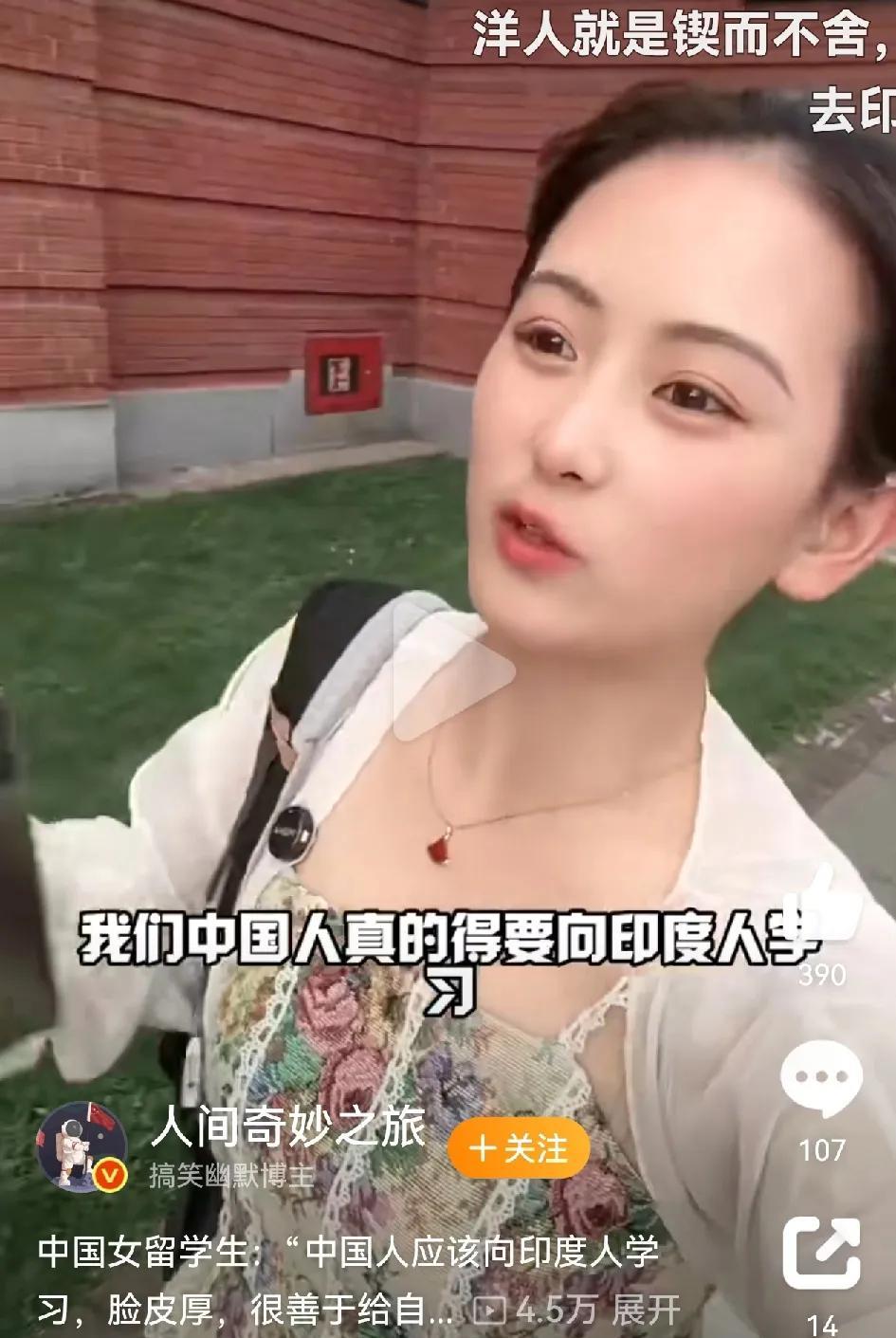 在国外留学的小仙女非常欣赏印度人,建议应该中国男人要向印度人学习,“脸皮厚,很善