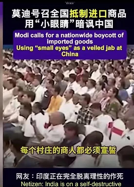 印度总理莫迪居然当众讽刺中国,暗讽中国为“小眼睛”。不知道他指啥意思。但当众说出这样有失体面的话,完全不像一国总理的样子。他还号召印度所有的企业不要销售中国的商品,无论利益多大也不要出售中国的商品。 看到这里我不禁奇怪了,难道印度现在什么都能自给自足,生产出来了?莫迪,你不要今天演讲的时候为了煽动人心,信口开河说一套,下次求到中国的时候又是一套,