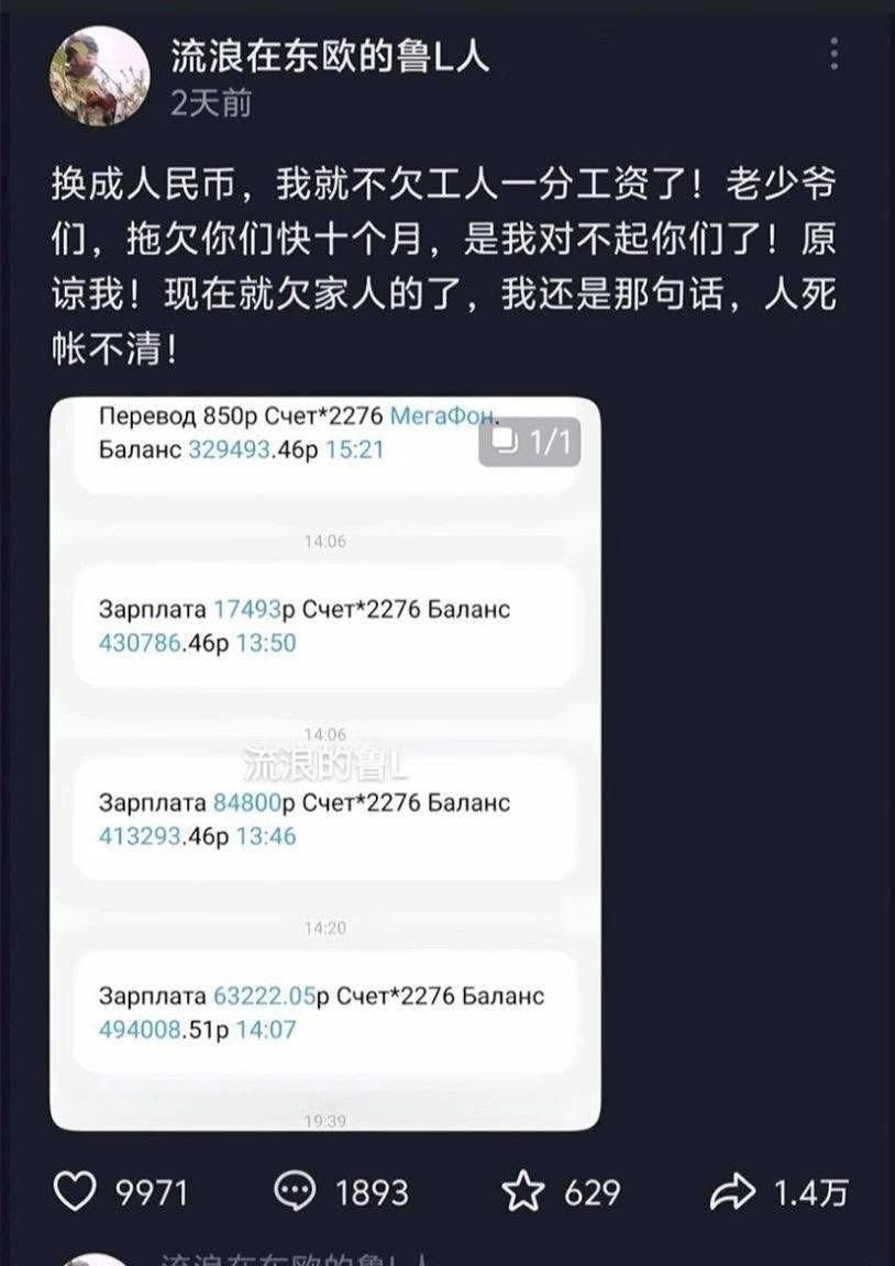 为了早日还债赴参战,债清时命已丧! 一名中国山东男子被拖欠雇主工资,无法支付工人138万人民币(= 19.1万美元)的工资。为了赚钱,他决定加入俄罗斯军队。他战斗了11个月,还清了所有债务,原定于7月14日退役。然而,就在退役前几天,他阵亡了。 #拖欠工人劳务费# #工资债务拖欠#