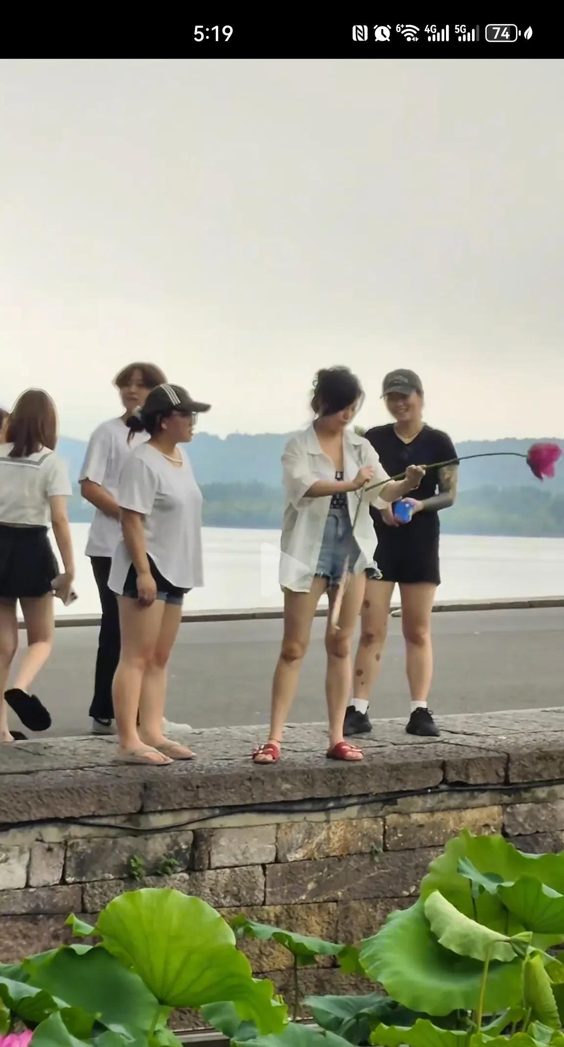 杭州西湖边,三个女孩竟跳到荷塘里偷采一只盛开的荷花。有游客拦阻也不听。在保安人员