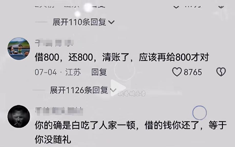 这账是算不明白了,评论区一下子出现了5000多个数学家,算来算去都感觉不对劲! 昨天看到一个视频说是一位网友去参加同事的婚礼,结果快到婚礼现场发现自己没带现金,于是就问同事借了800块,晚上回家就给同事还了,结果同事说他没良心,白吃这顿席。 结果评论区炸锅了,有人说:没毛病啊!借了800不是随礼了吗?回家又还给同事800,一共从自己身上出去800!我算错了吗? 也有人说:随礼这种事都是负数,你这一进一出账不是平了吗?对于这种说法立马就有人反驳了,何来平账的说法,我是问你借了800块,但是结婚时我随你了,然后晚上回家又给你转了800。 妈呀!这把我也搞晕了,那么这账到底怎么算呢?有没有大神告诉我?