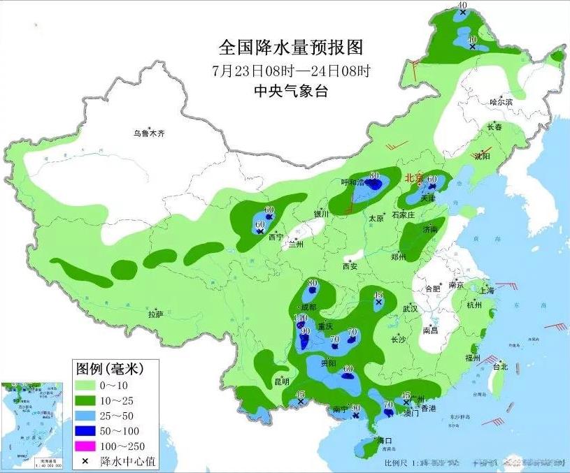 第7号台风即将生成,大雨暴雨中心锁定,看看今日强降雨怎么分布 今天时间到了7月23号了,昨日刚刚进入到大暑节气,今天算是大暑的第二天了。大暑到,不知道你们那里暑热是不是更加厉害了呢? 很意外,很意外。自7月到来已经二十多天,前二十天都是高温酷暑,一点儿雨滴没有见到。但是,从昨日进入到大暑节气了,天气突然出现强降雨了,并且,从昨天开始,我们当地最高气温骤降十摄氏度左右,一下子从酷暑三伏天到秋凉的天气。今天23号,虽说没下雨,但是阴天,天空乌云密布,大风吹着乌云移动很快。让我们感受到了秋凉的感觉了。 这与6号台风的剩余环流的影响是少不了的。并且,今年第7号台风也即将要生成了。根据预测,第7号台风将会是在明日24号生成。并且,生成后的移动方向是向着西北方向,往我国的台湾岛与东部沿海一带。而预测会是在7月26号或27号登陆的。因此,目前台风的前期环流,带来的偏东风,也会带来台风湿润空气的。 今天是大暑第二天了,在大范围降雨天气下,高温酷暑已经缓解很多了。我们来具体看看今日强降雨分布情况: 青海东北部、四川盆地南部和北部、云南西南部和东南部、广西南部和中北部、贵州西部和北部、重庆西部、湖北西部、海南岛西部、广东西南部沿海、山东东北部、河北南部和东北部、北京东部、天津北部、山西北部、内蒙古南部、黑龙江西北部等地部分地区有大雨或暴雨。其中,四川盆地南部等地部分地区有大暴雨。累积降雨量可达到100~140毫米。上述部分地区还伴有短时强对流天气的。整体来看,今日的降雨还是受台风的环流影响比较大的。 当然,新的台风即将生成,并且新台风是朝着我国东部沿海过来的。7月底新台风可能迎来新一轮强降雨的。我们要提前做好防备。#头号创作者激励计划#