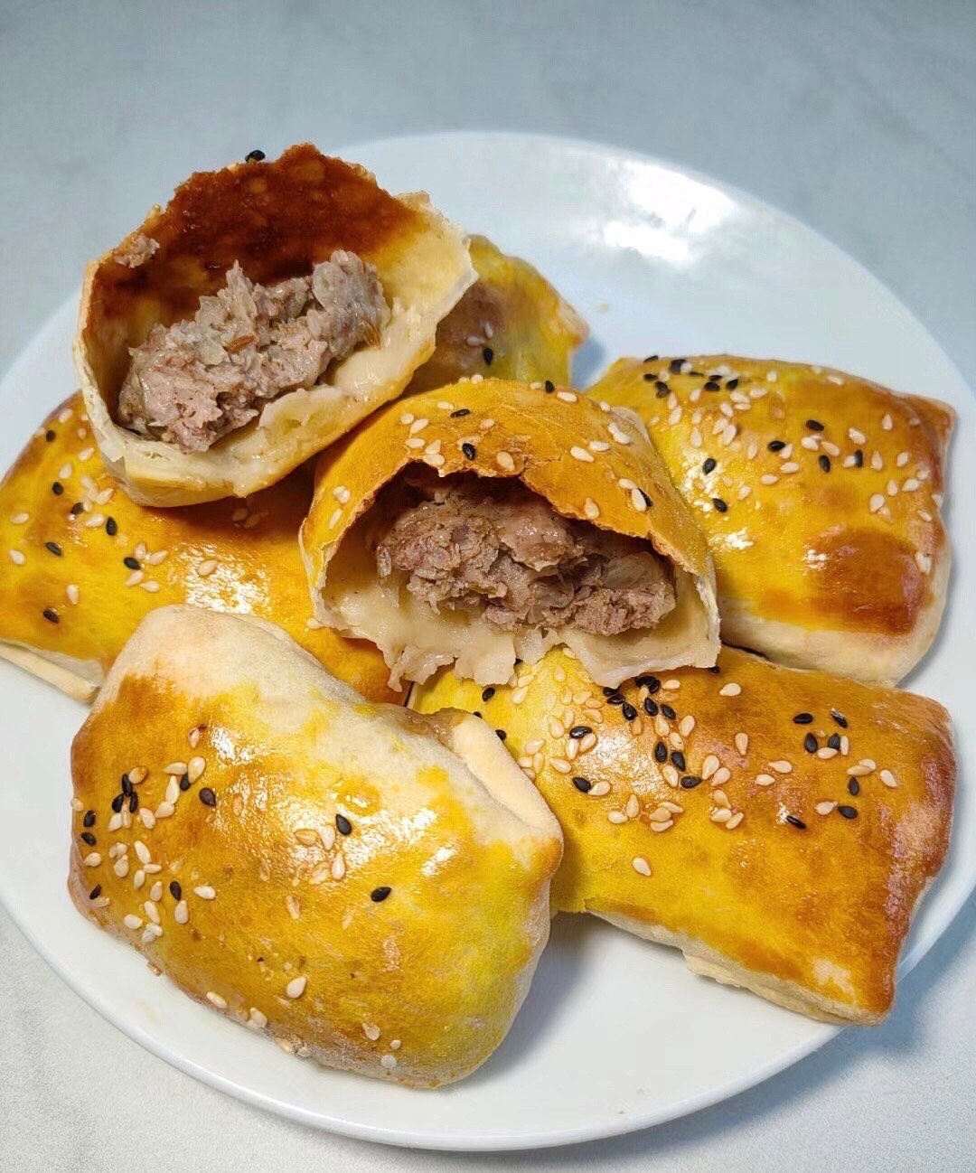 4️⃣.烤包子,新疆必吃的美食,烤包子皮酥脆,里面是鲜嫩多汁的羊肉洋葱馅。