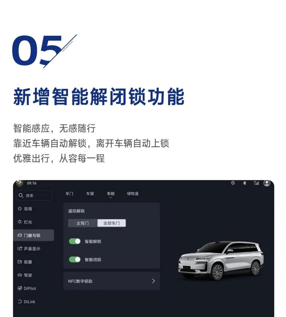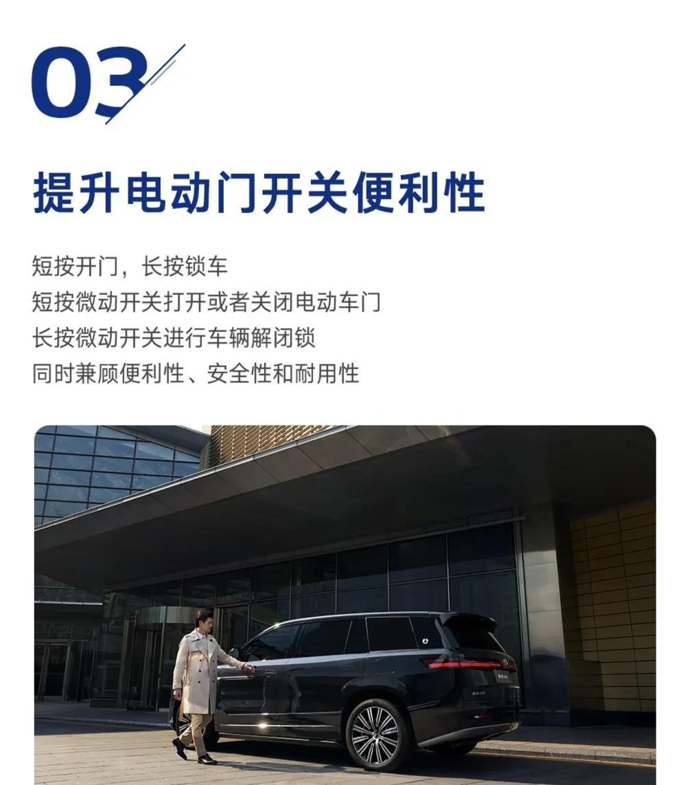 科技安全旗舰SUV腾势N9近日再度迎来重磅OTA,本次升级包含路面预瞄2.0、雨雪路面增稳防滑、电动门开关便利性、UWB车钥匙支持华为手机、智能解闭锁五大功能,全能驾控再进化,带来更舒适、安全、便捷的出行体验。 在日常的用车过程中,我们经常会碰到井盖、坑洼、减速带等颠簸路段,新增的「路面预瞄2.0」能提前感知路面起伏,做出快速响应及调整,带来平稳舒适的驾乘体验,用户也可以根据自身偏好选择开启或关闭。 近期全国各地都在下雨,增加了一定的行车中风险,「雨雪路面增稳防滑」借助易三方技术可实时监测每个车轮的抓地力并动态调整动力分配,从而提升车辆稳定性。 「电动门开关便利性」也很实用,短按微动开关可自动打开或者关闭车门,长按微动开关可进行解锁或者上锁;手机UWB车钥匙就不用过多介绍了,无需实体钥匙,靠近车辆即可解锁; 「智能解闭锁」指的是携带实体钥匙靠近车辆,车辆自动解锁,离开车辆自动上锁,让出行更优雅从容。 自上市以来,腾势N9已历经三次OTA升级,这不仅是腾势在智能化上持续投入的体现,也是对“最听劝”品牌的有力践行,整挺好![机智]#腾势OTA智能豪华再进化#