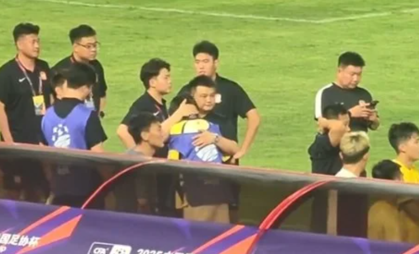 据报道,在青岛西海岸主场输给国安无缘足协杯四强后,俱乐部投资人徐尚将泪流满面的儿子搂在了怀中。