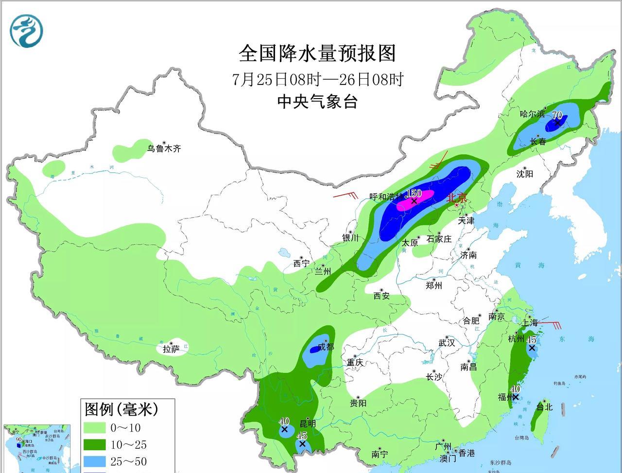 北方入夏以来最强降雨已锁定,暴雨大暴雨上线,7月24~25号暴雨分布如下 今年夏