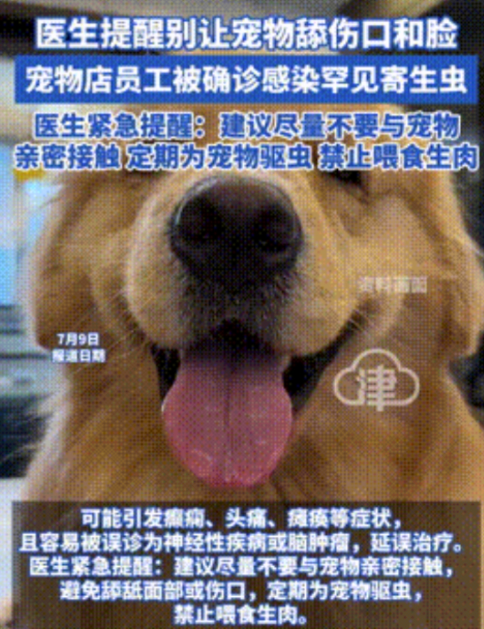 医生表示,随着宠物数量的增加,因宠物导致的人体感染寄生虫的病例并不罕见。