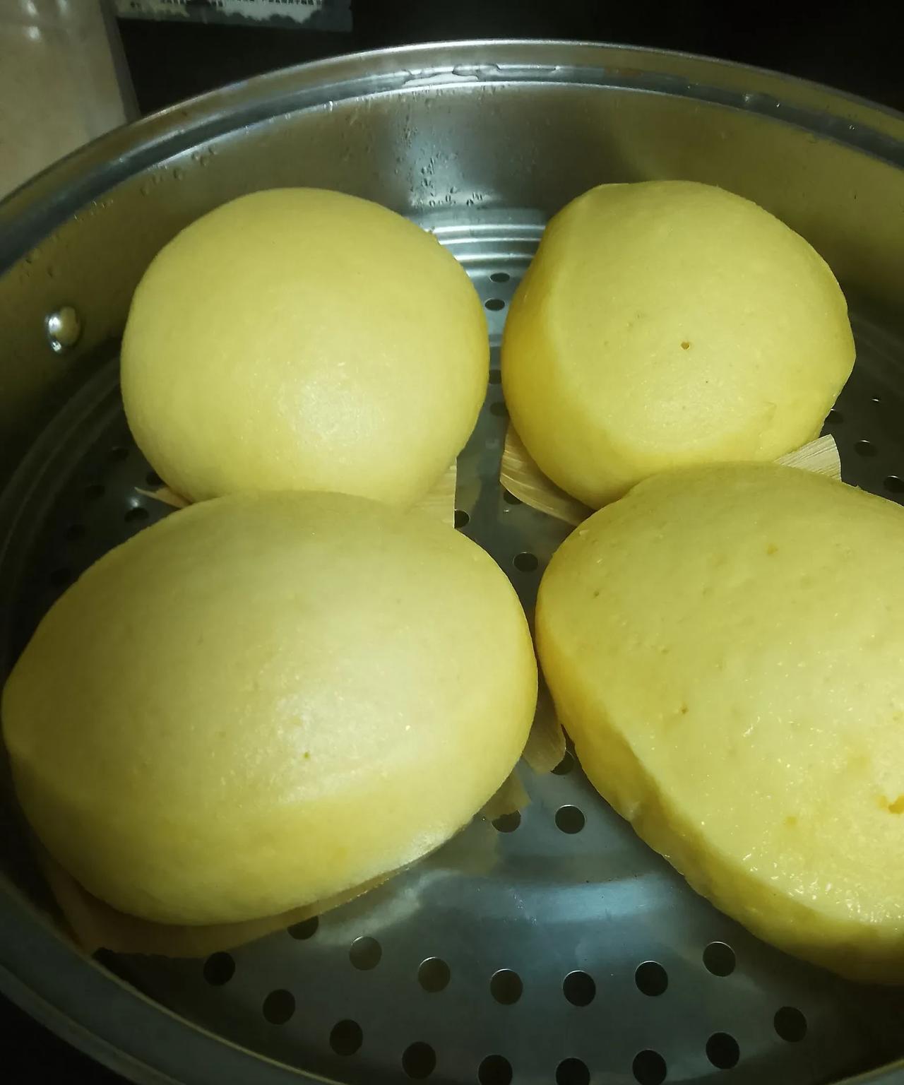 这是昨天晚上蒸的玉米馒头。 特别好吃,可是昨晚我却一口没吃。 不是雇主不让吃,而